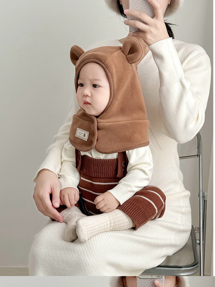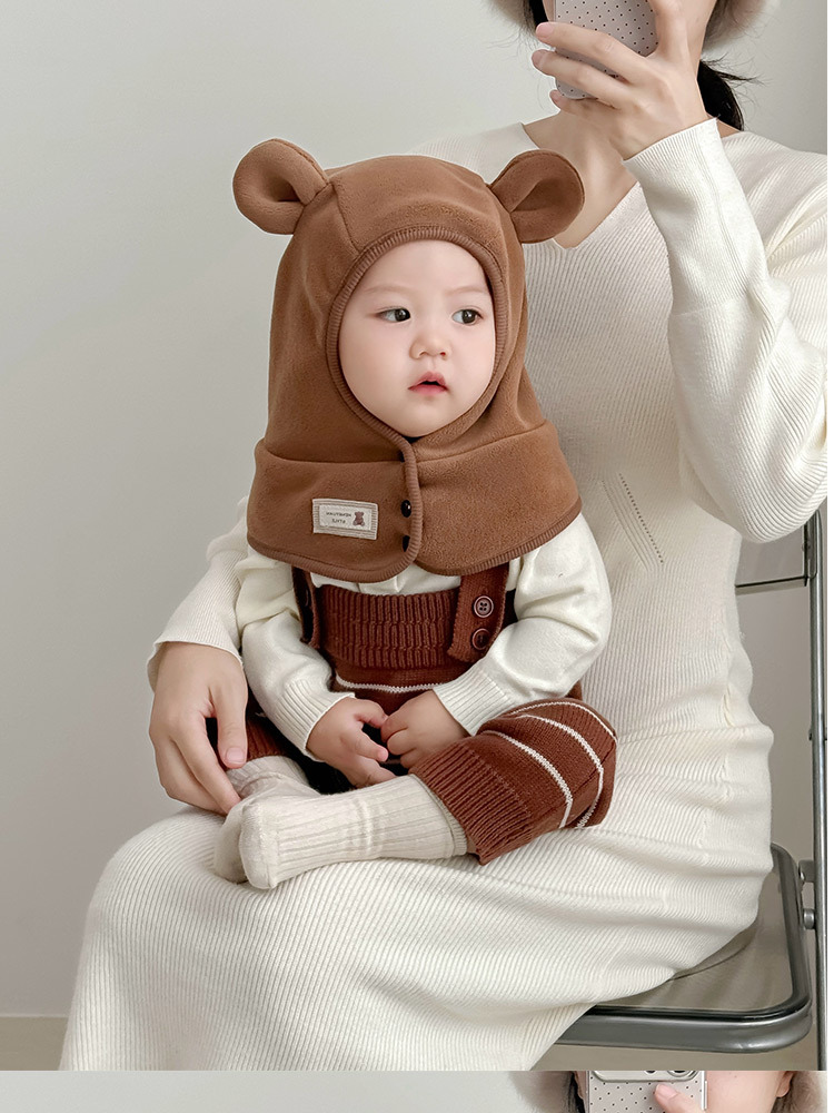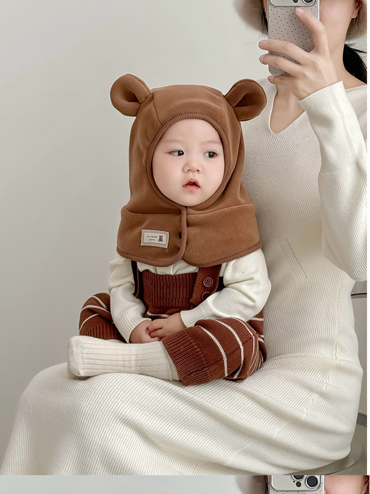 아기 모자 스카프 올인원 귀여운 곰 아기 양털 귀 보호 모자 소년 소녀를위한 차가운 승마 모자