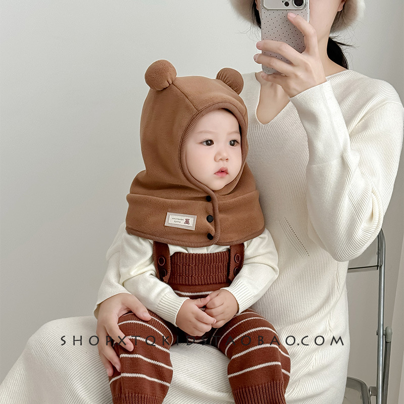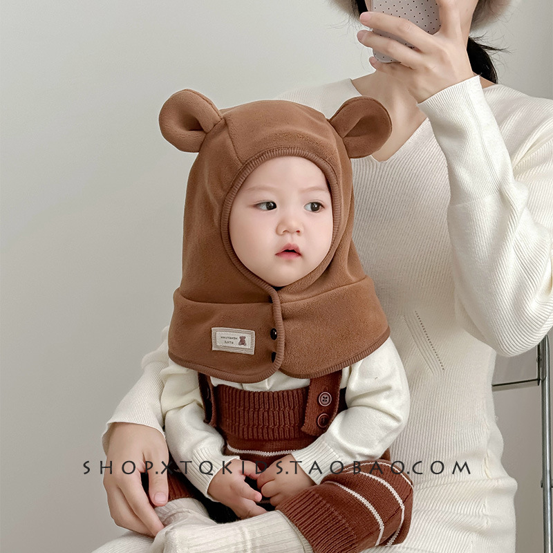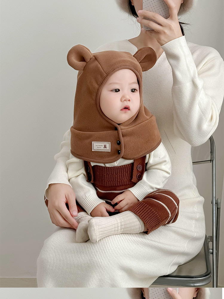 아기 모자 스카프 올인원 귀여운 곰 아기 양털 귀 보호 모자 소년 소녀를위한 차가운 승마 모자스토어 가기