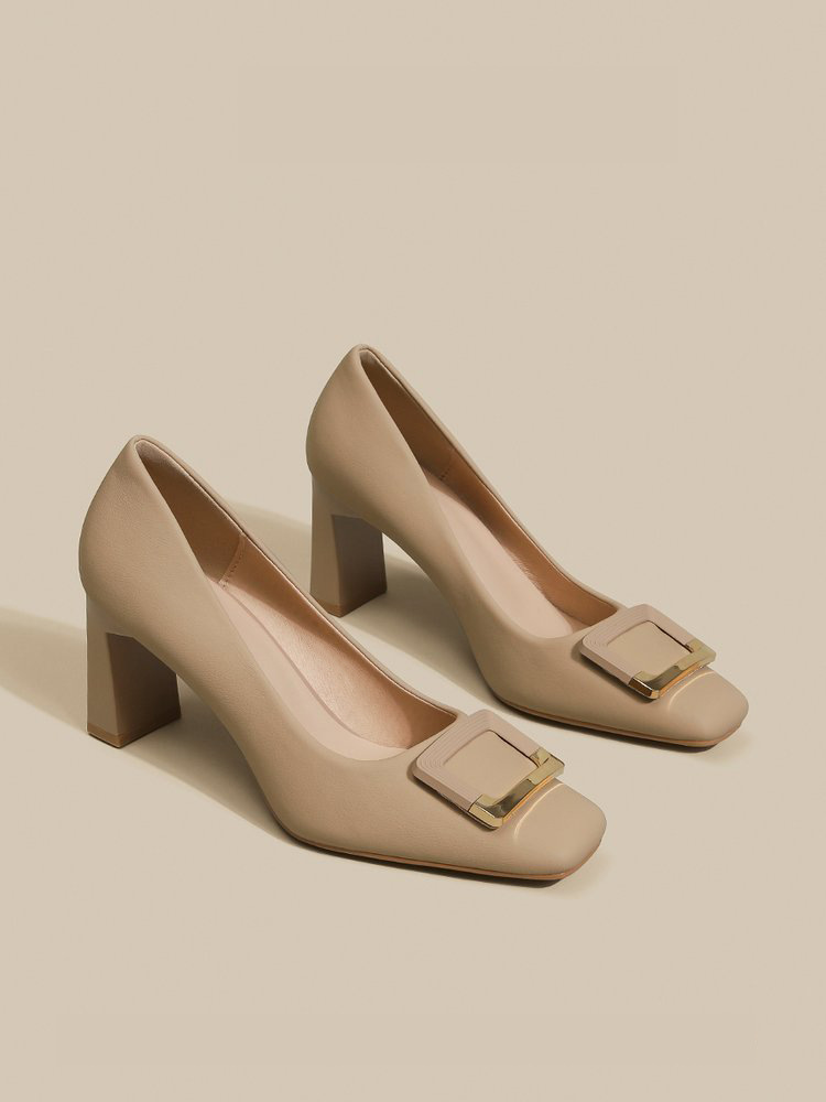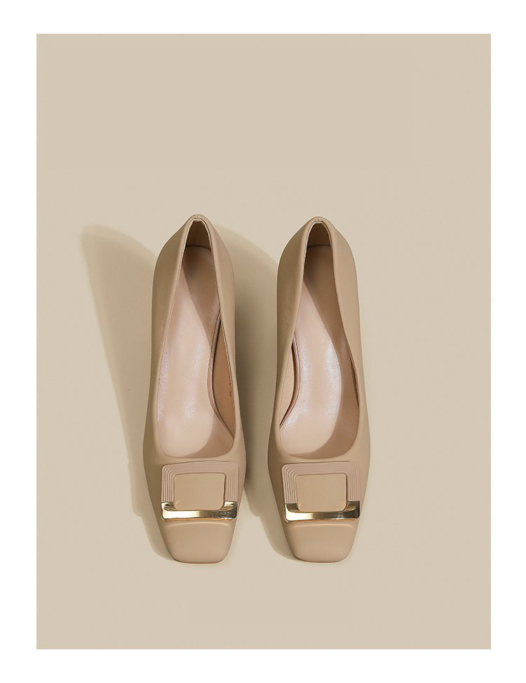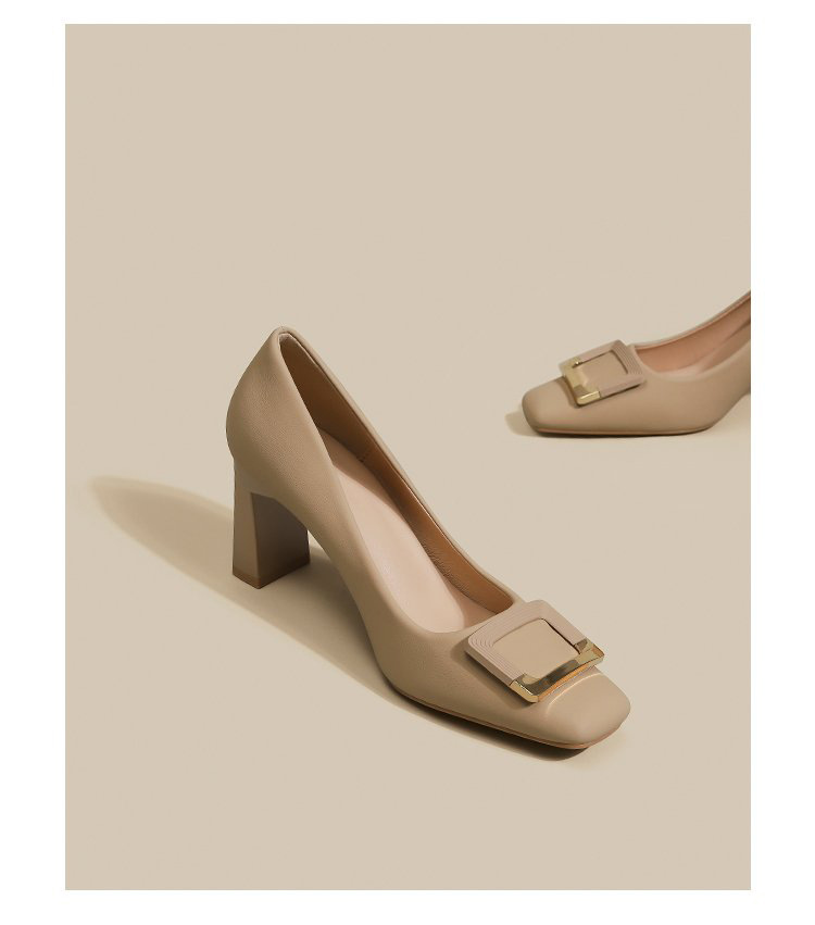 누드 컬러 스퀘어 버튼 헤드 두꺼운 힐 신발 여성의 피곤하지 않은 발 2024 새로운 올 매치 미드 힐 샬롯 입 신발 여성용 가죽 신발스토어 가기