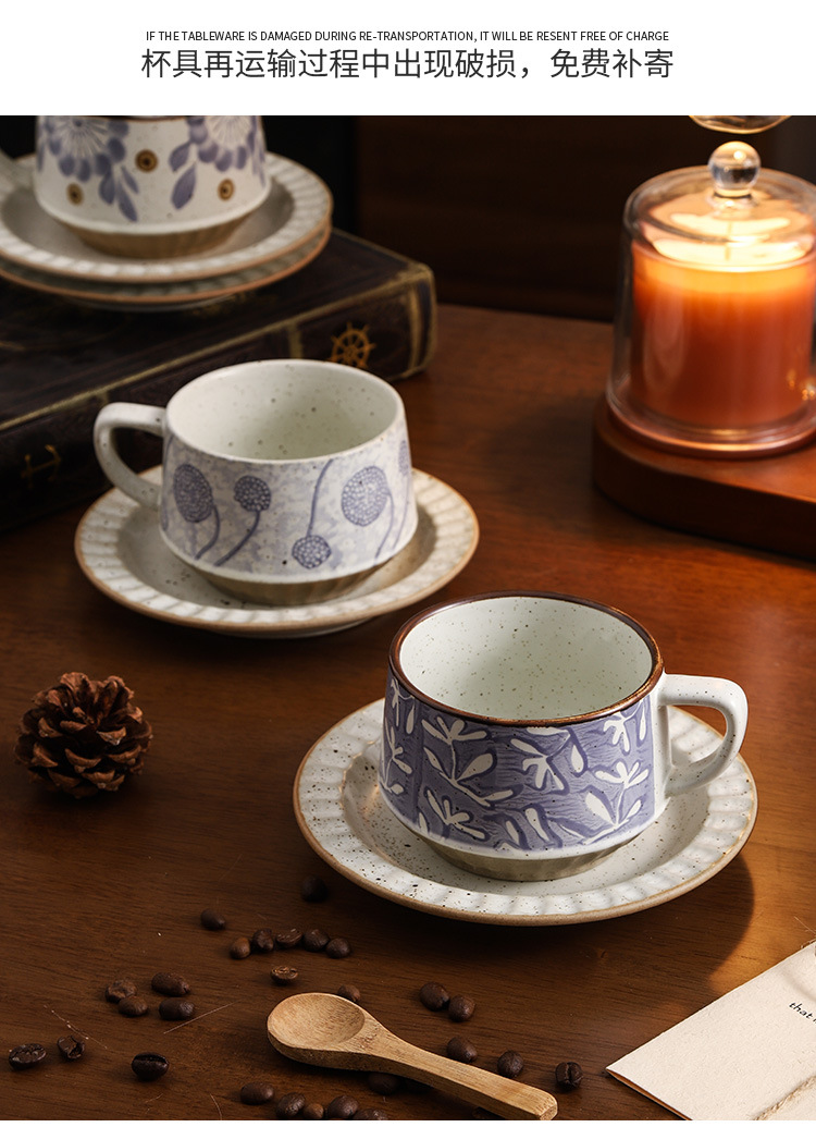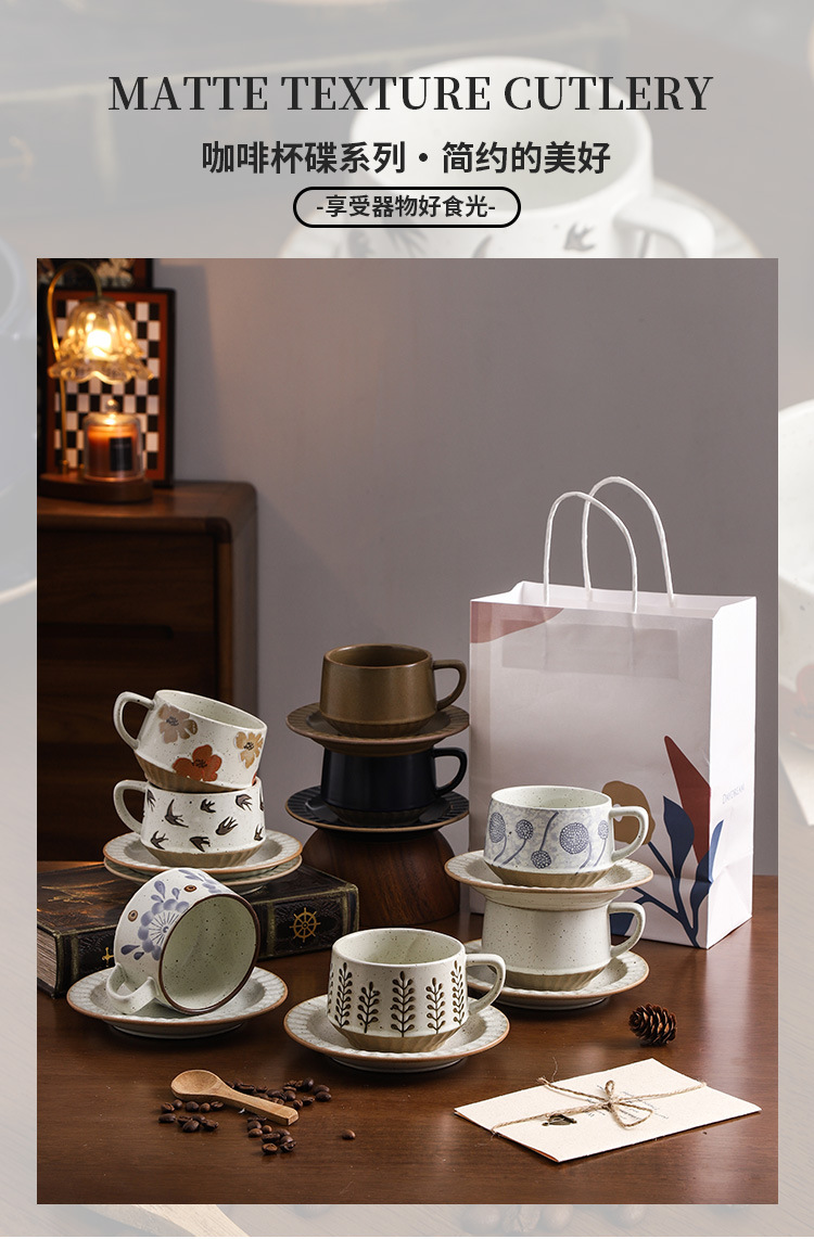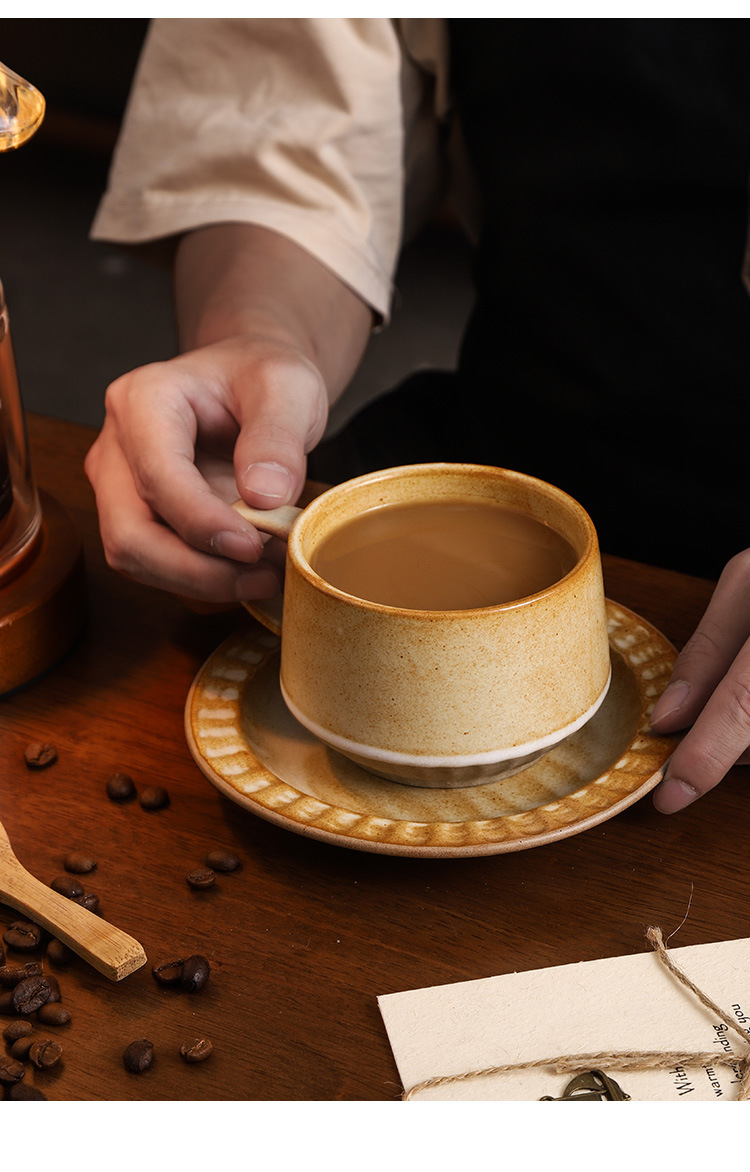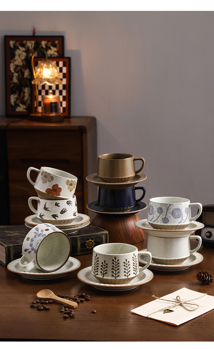 창조적 인 석기 커피 컵 접시 라떼 꽃 컵 간단한 색상 복고풍 일본 가마 세라믹 컵 가정용 물 컵스토어 가기