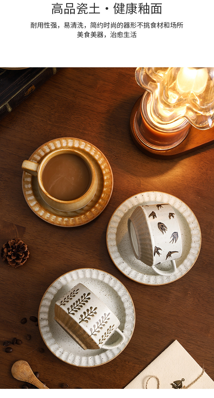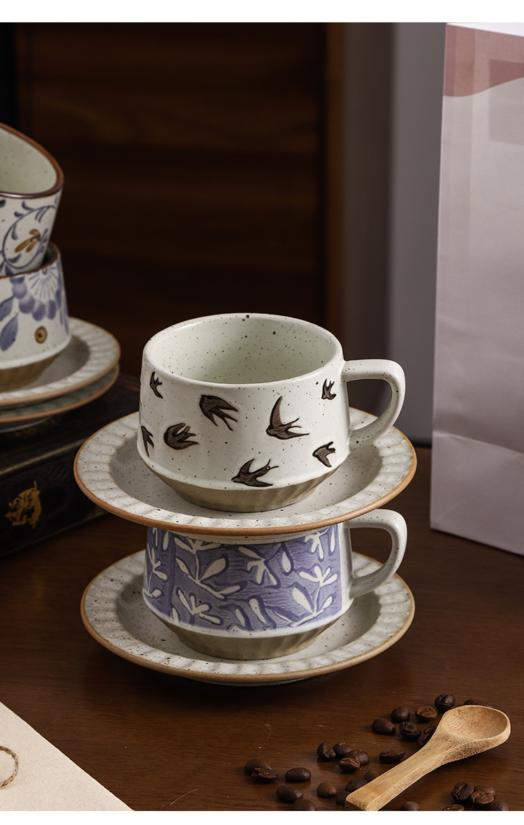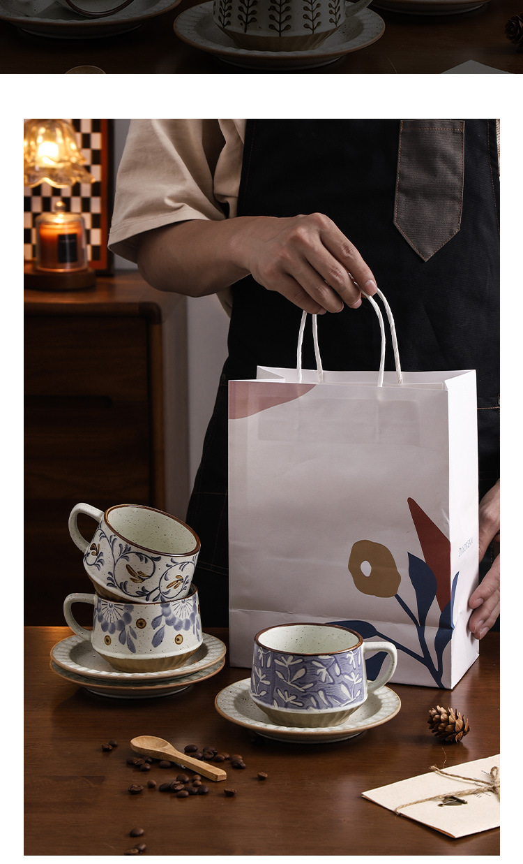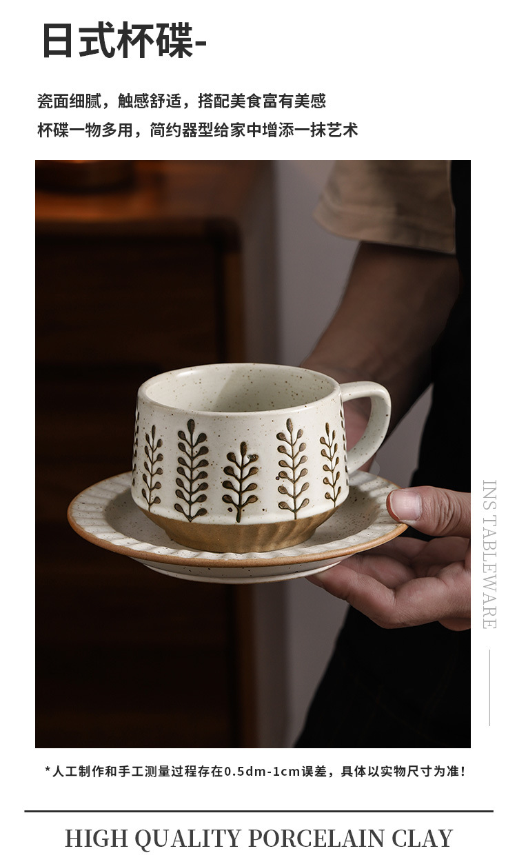 창조적 인 석기 커피 컵 접시 라떼 꽃 컵 간단한 색상 복고풍 일본 가마 세라믹 컵 가정용 물 컵스토어 가기
