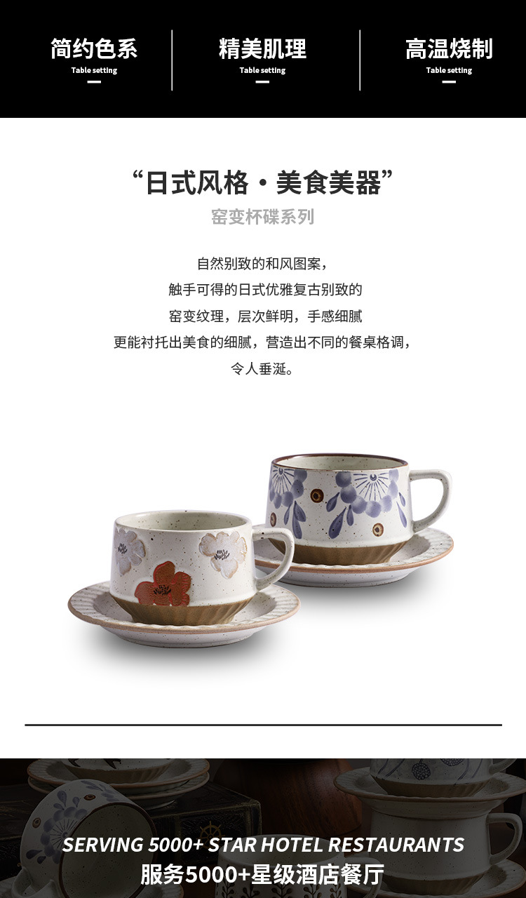창조적 인 석기 커피 컵 접시 라떼 꽃 컵 간단한 색상 복고풍 일본 가마 세라믹 컵 가정용 물 컵
