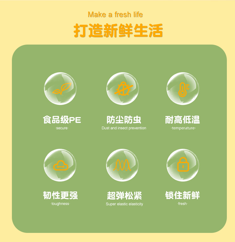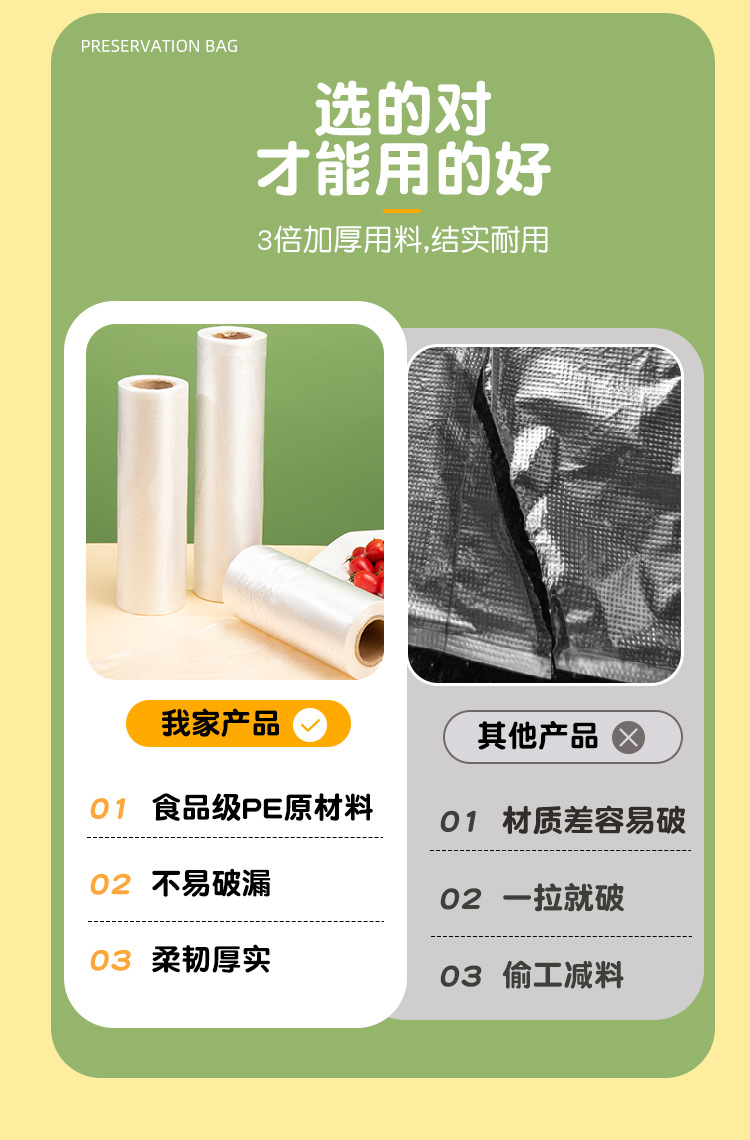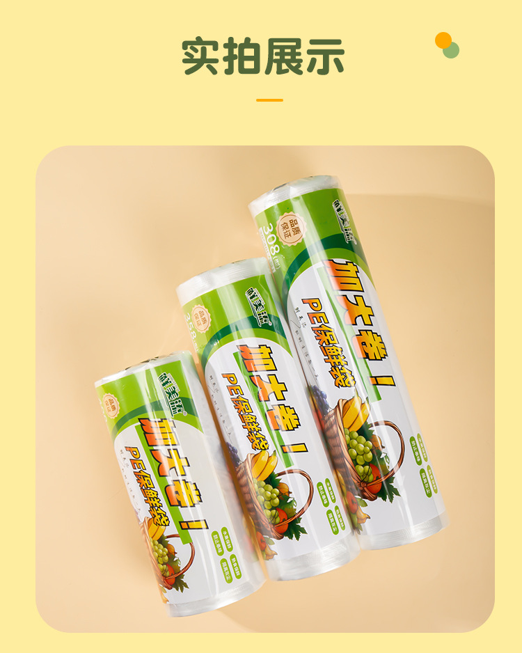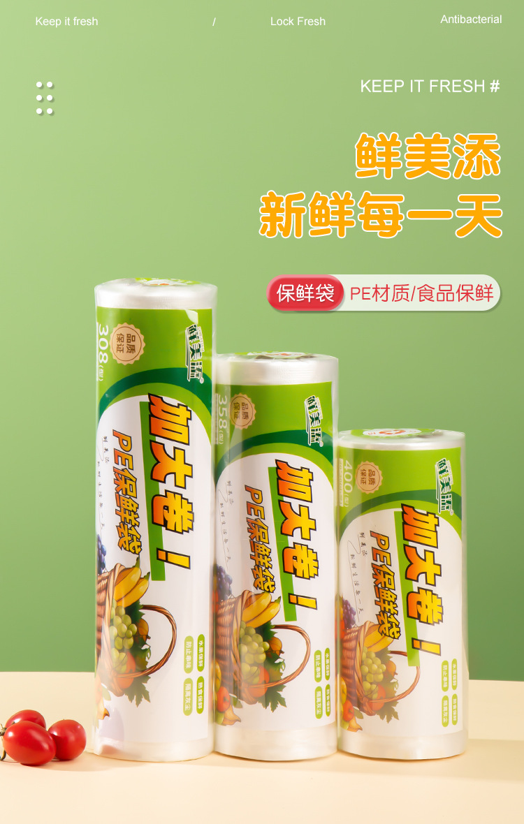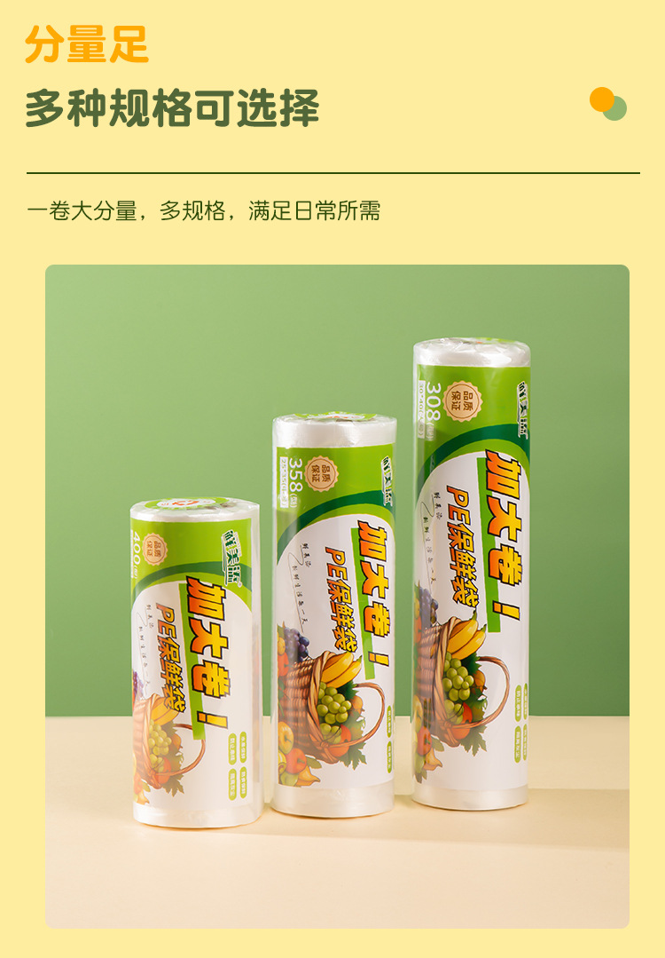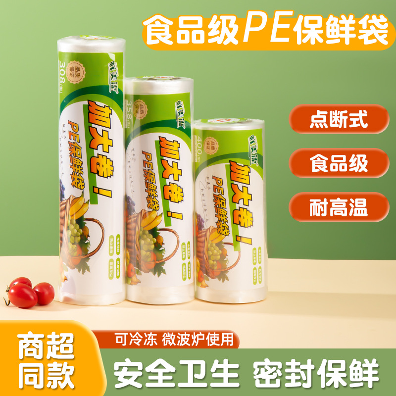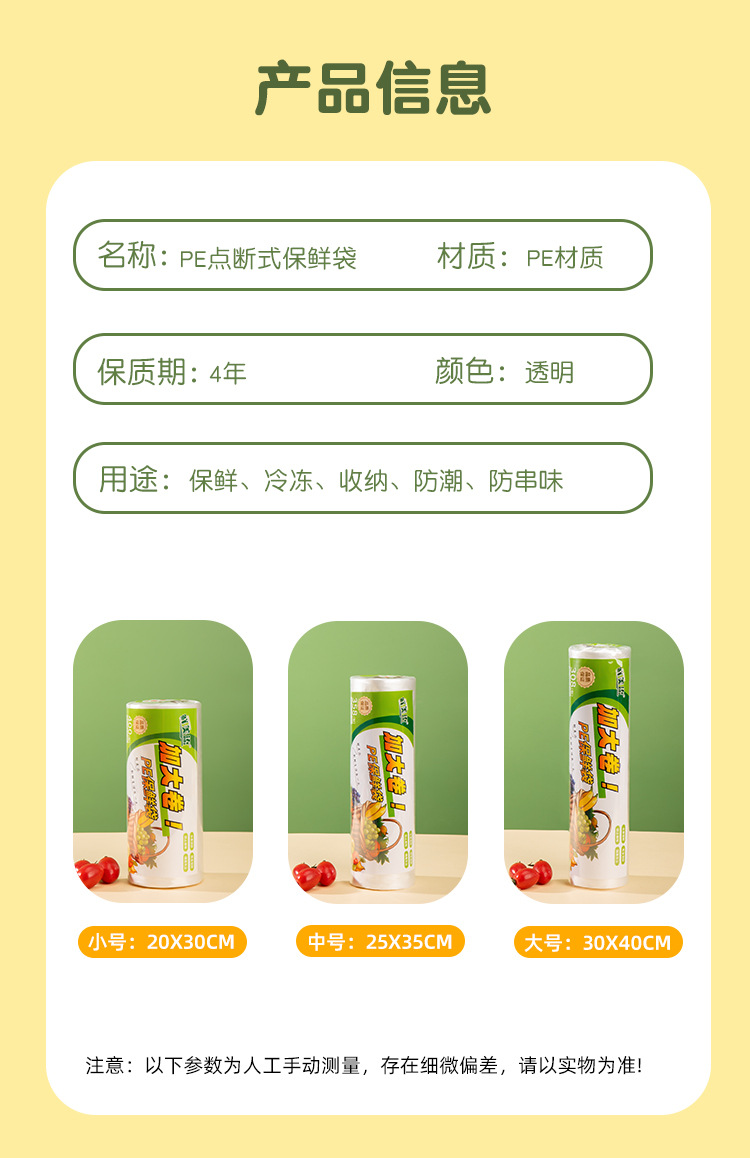 Bick Bear 신선한 가방 식품 등급 강후 크고 중간 크기의 스몰 사이즈 포인트 브레이크 비닐 봉지 플라스틱 보존 필름 커버 PE 연속 롤 백