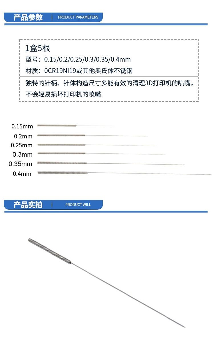 3D 프린터 노즐 청소 바늘 스테인레스 스틸 초정밀 스틸 바늘 가스 스토브 금형 가스 용접 바늘 0.1