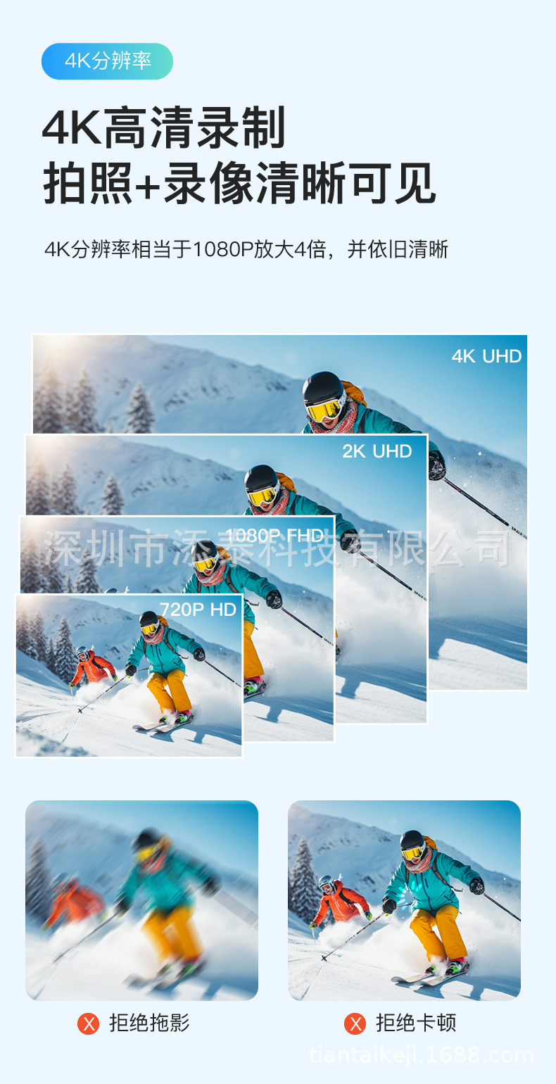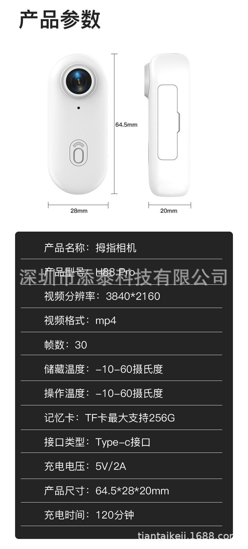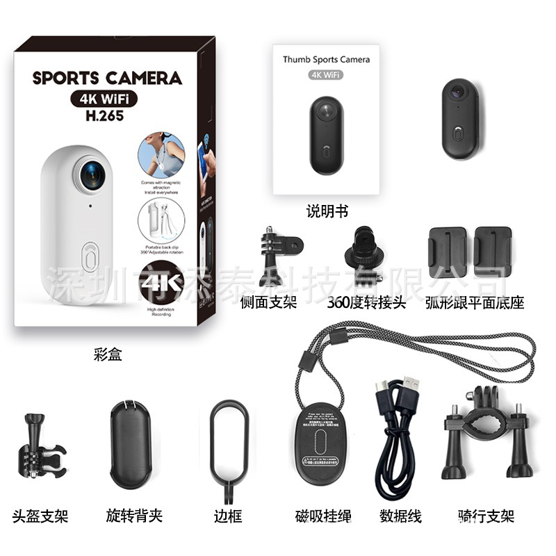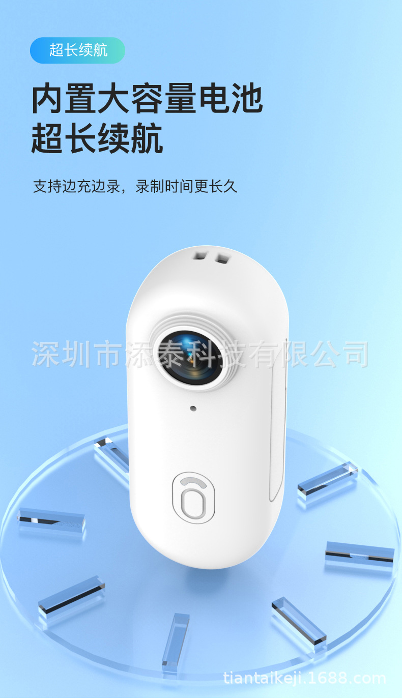 【角度/像素】120度大广角镜头,录像3840*2160,内置超大容量锂电池。