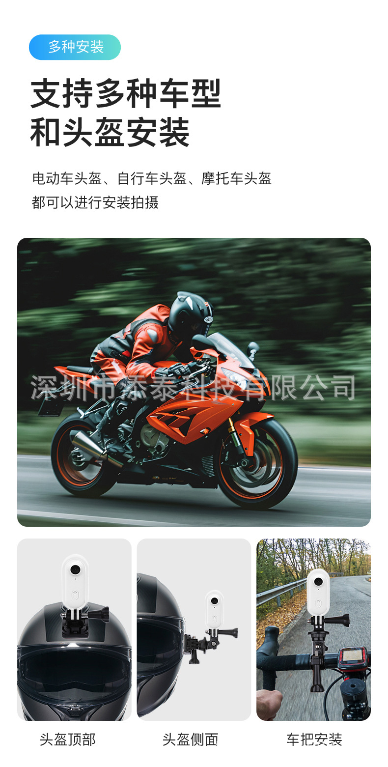 ④WiFi实时分享,支持多种车型和头盔安装,搭配防水壳可水下深度20米防水。