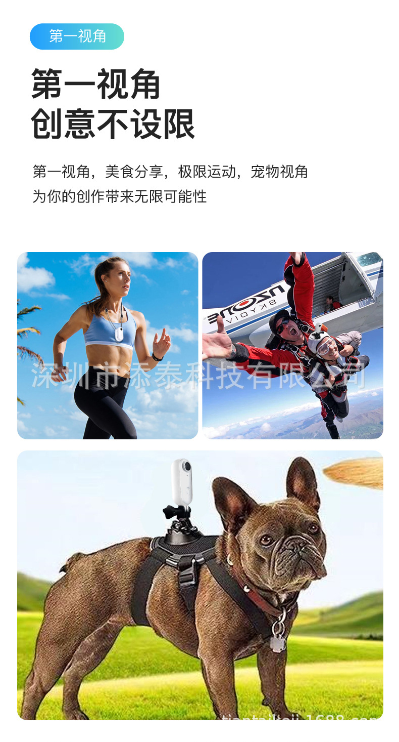 【产品场景】适用于宠物、潜水、钓鱼、骑行、登山、冲浪、旅行记录、生活记录、户外活动等。