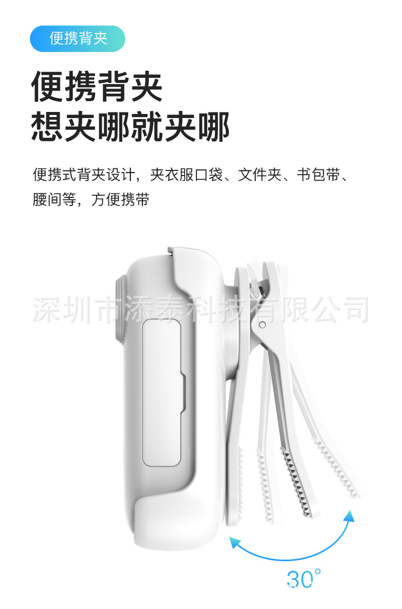 ③便携式背夹设计,夹衣服口袋、文件夹、书包带、腰间等,方便携带
