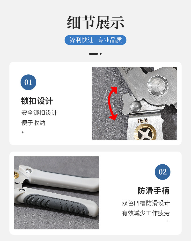 • 다기능 와이어 스트리퍼 회색 검정색 구리 링