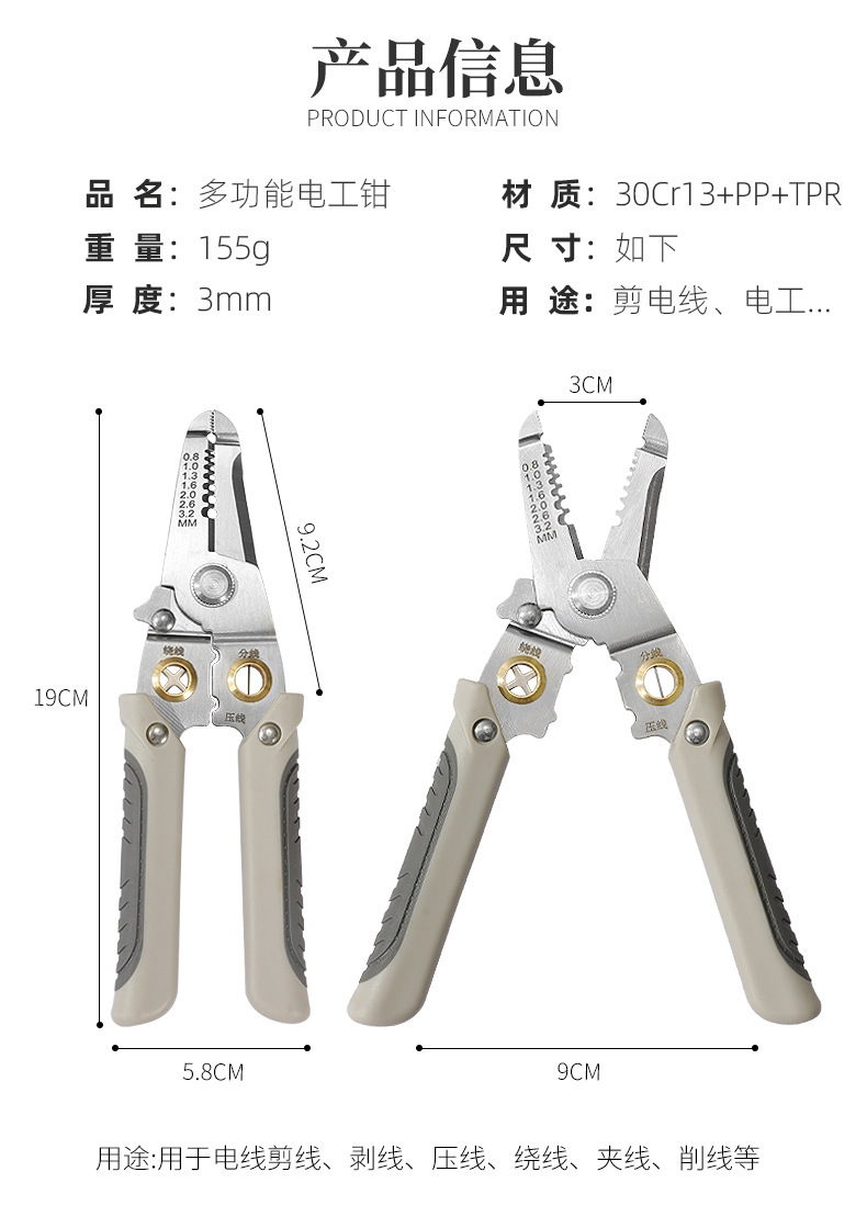 공장 도매 전문 와이어 스트립 펜치 다기능 전기 제품 새로운 케이블 절단 펜치 스트립 압력 와이어 절단 펜치스토어 가기