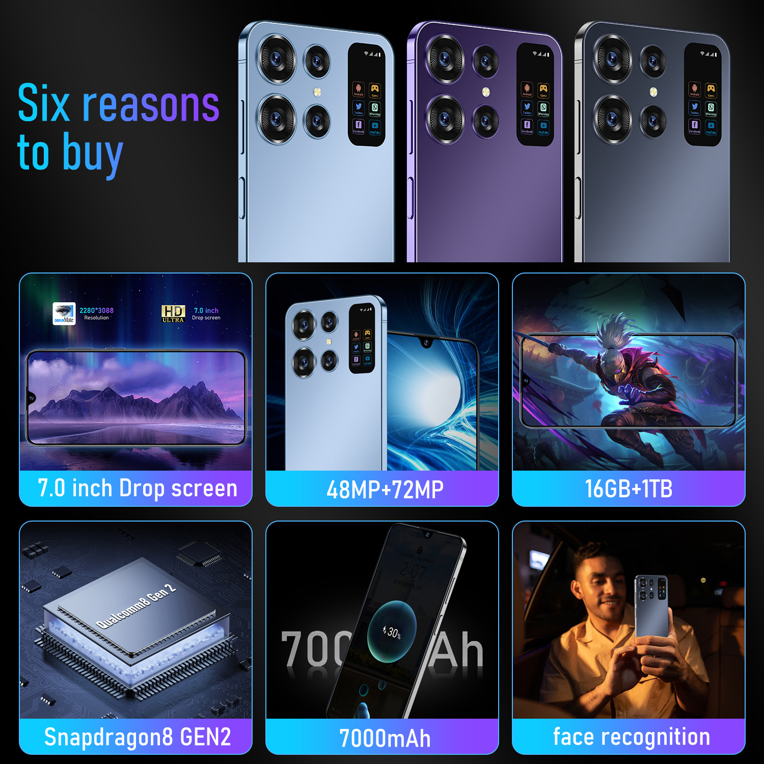 새로운 S24 Ultra6.5 인치 대형 스크린 2 16G 안드로이드 스마트 국경 휴대 전화 대외 무역 소스 제조 업체를 대신하여