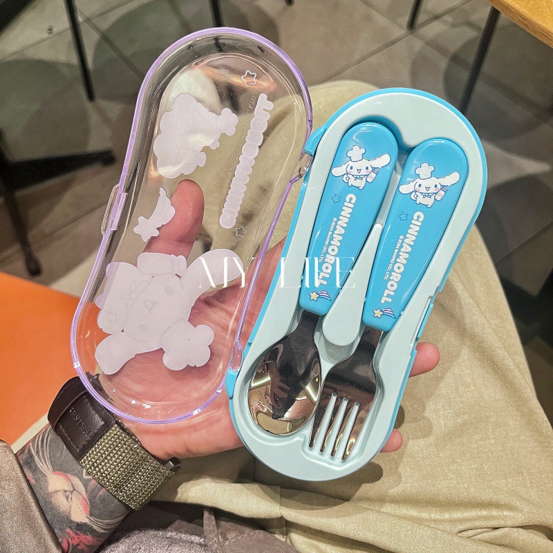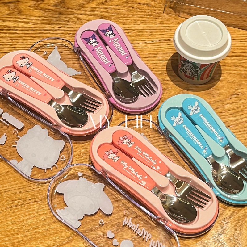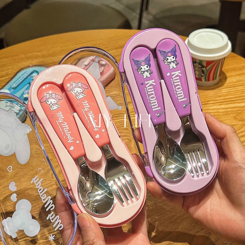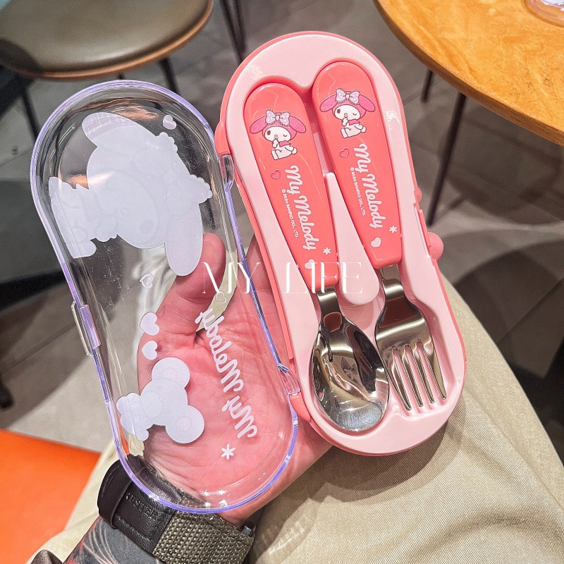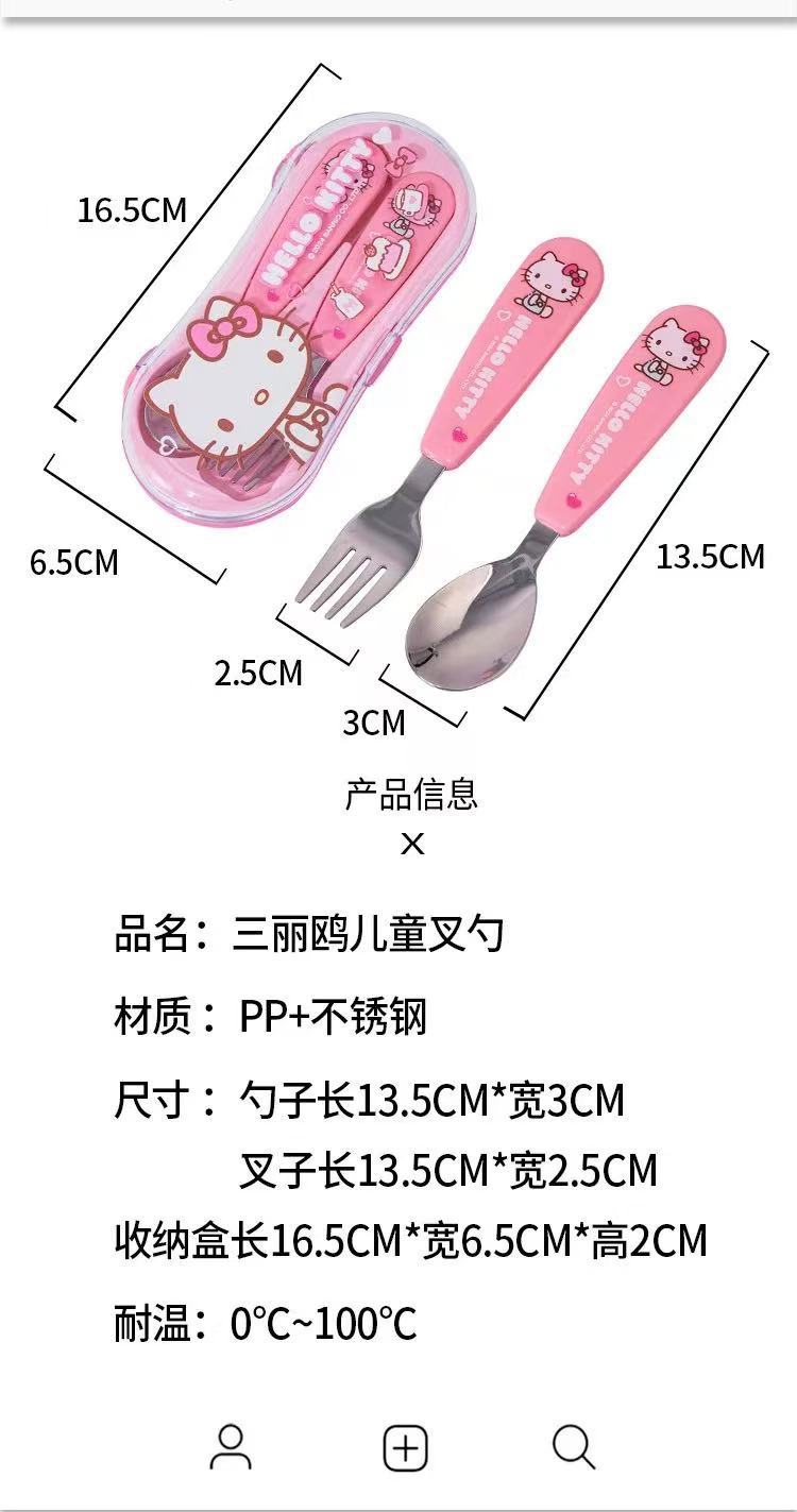 산리오 귀여운 아기 스테인레스 스틸 식기 세트 상자 투피스 세트 어린이 특별 안티 드롭과 숟가락 포크스토어 가기