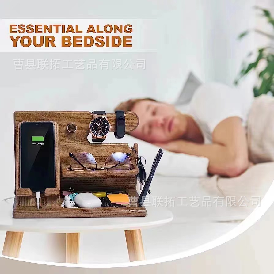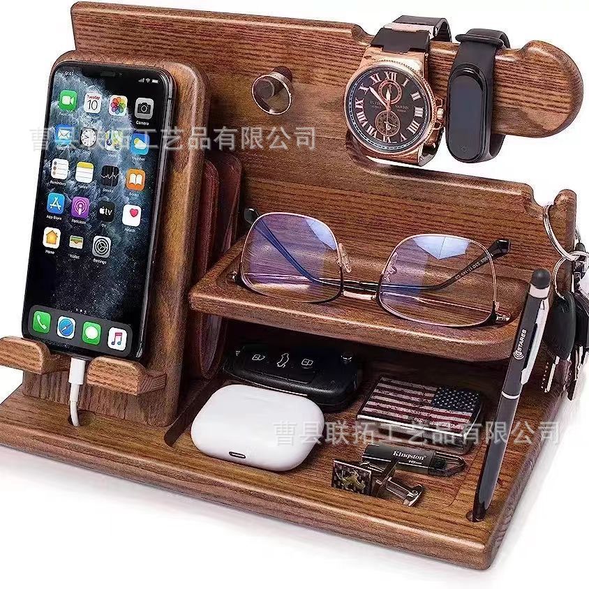 단단한 나무로 만든 휴대폰 홀더, 데스크탑 크리에이티브 수납함, 다기능 걸이식 시계, 안경, 열쇠고리 수납함