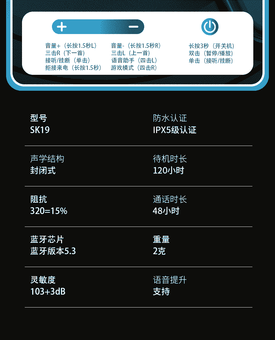 SK19 무선 수면 블루투스 이어폰 인이어형 개인 디자인 해외 공장 직배송 IPX6 방수 블루투스 5.3