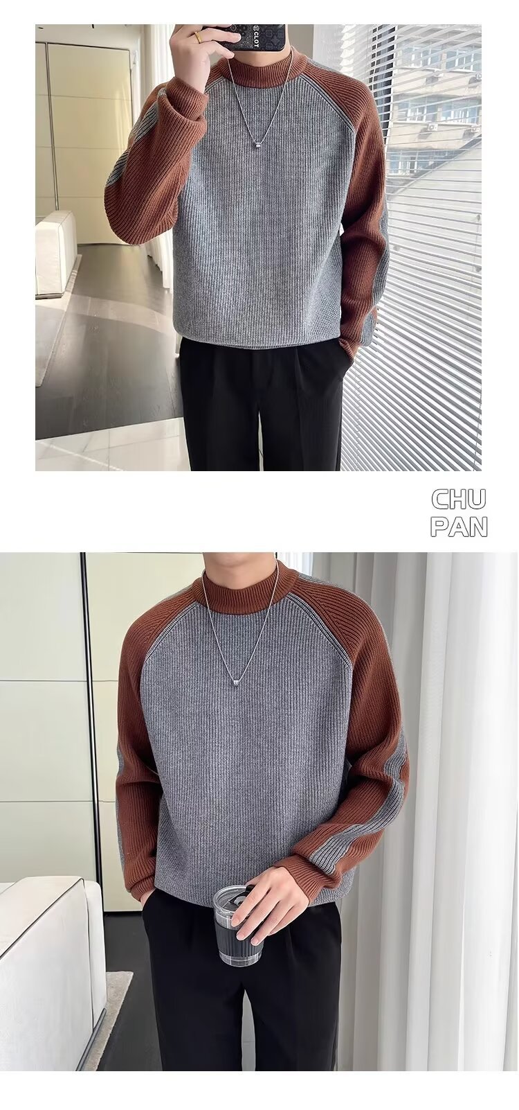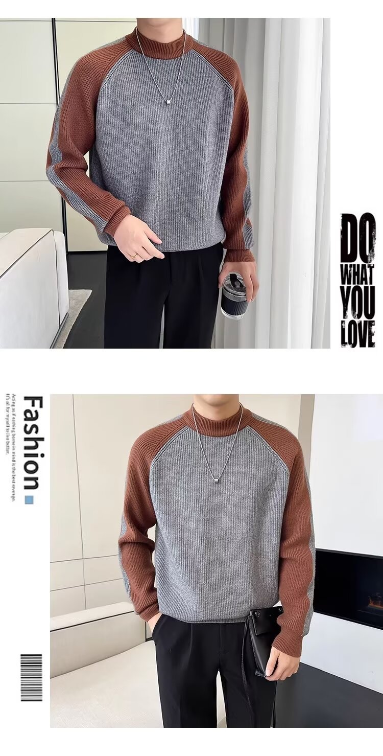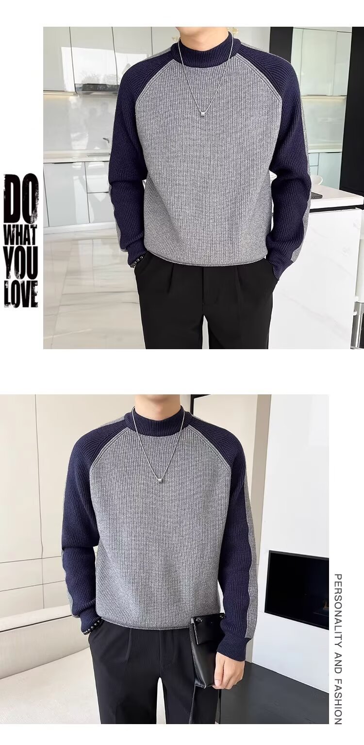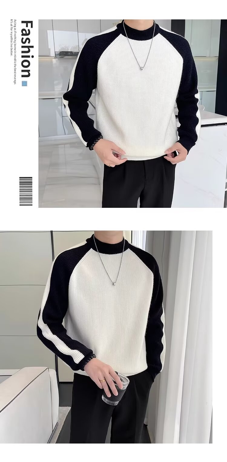 두꺼운 대비 스웨터 남성 가을 및 겨울 새로운 패션 브랜드 긴 소매 니트 베이스 셔츠 캐주얼 탑스토어 가기