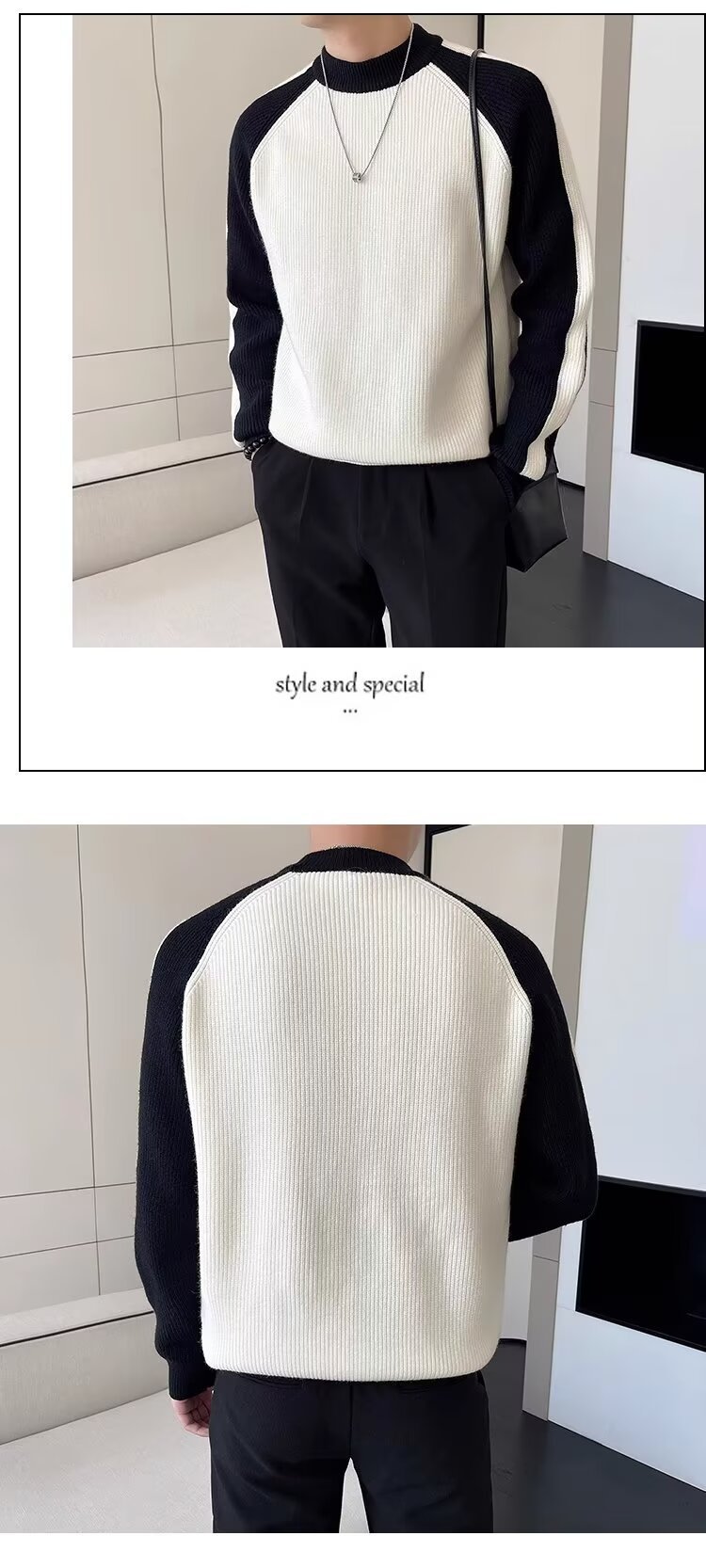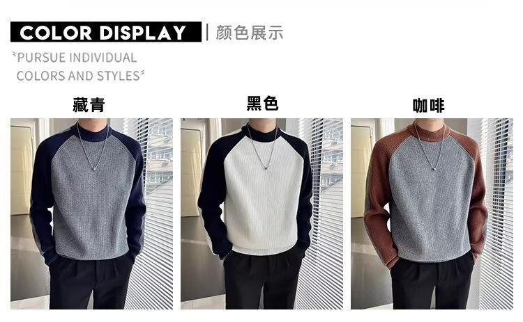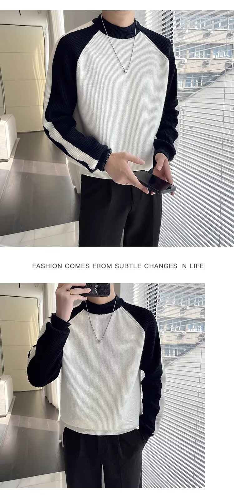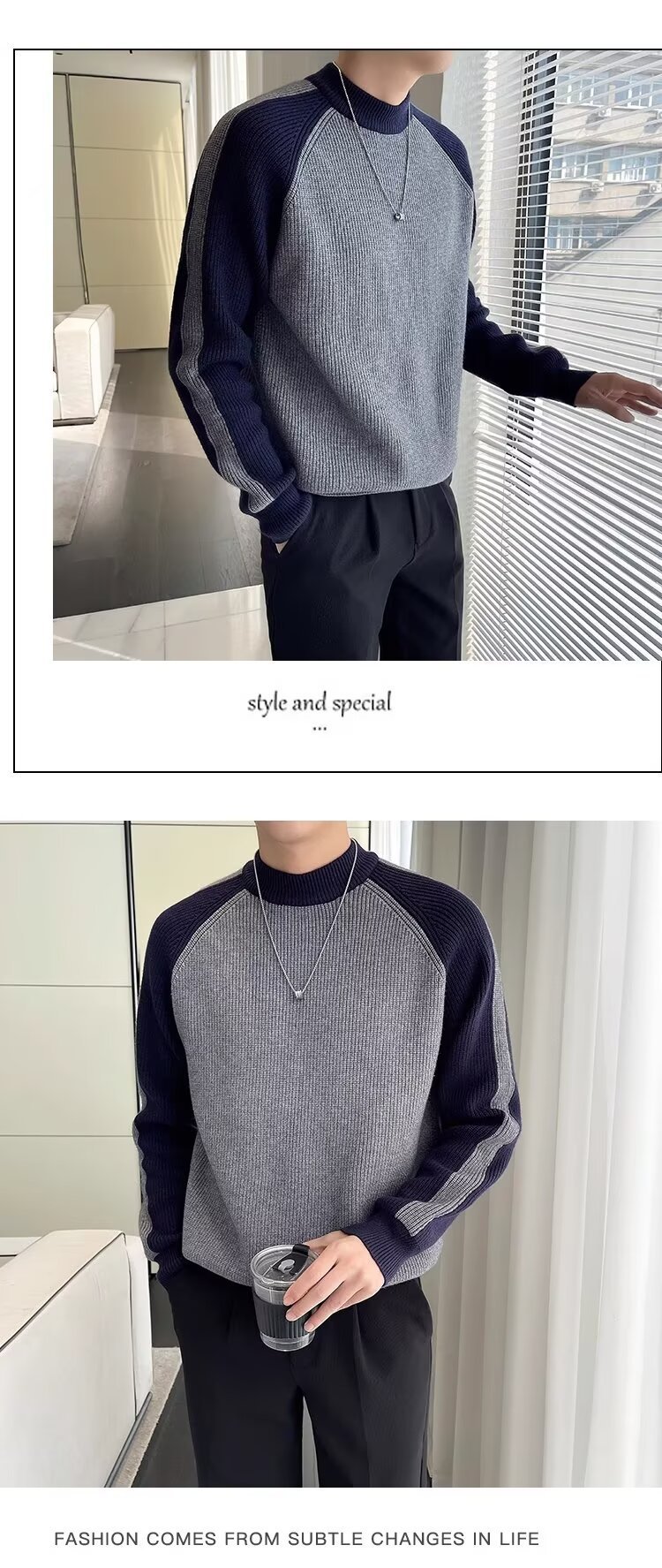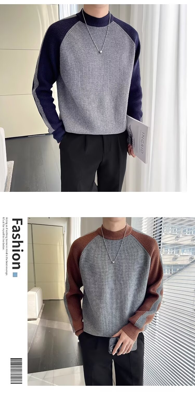 두꺼운 대비 스웨터 남성 가을 및 겨울 새로운 패션 브랜드 긴 소매 니트 베이스 셔츠 캐주얼 탑스토어 가기