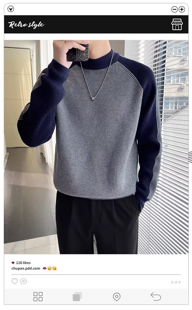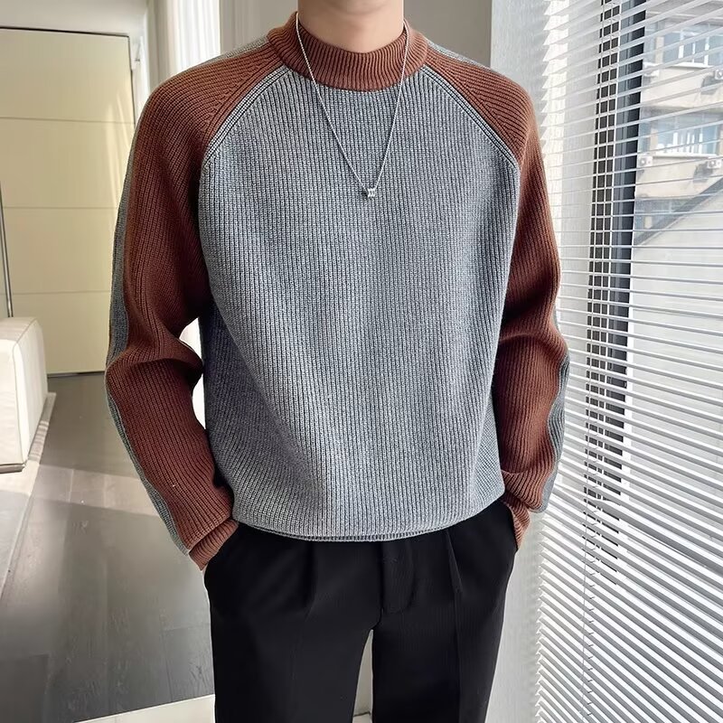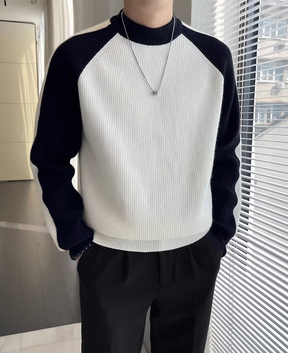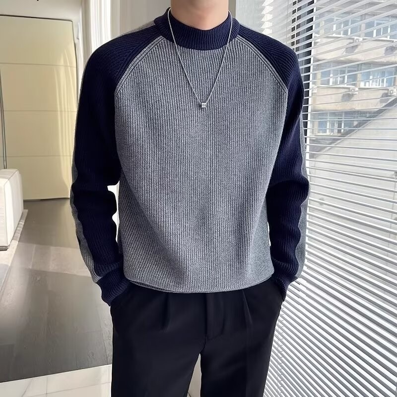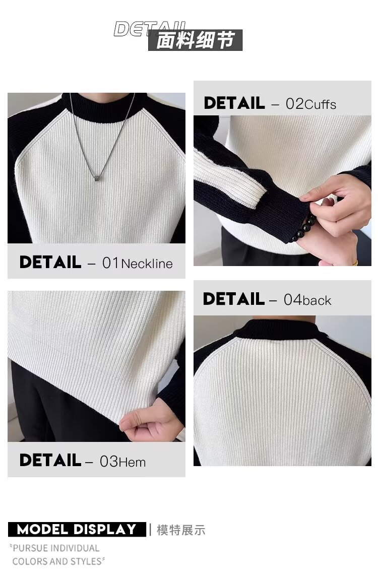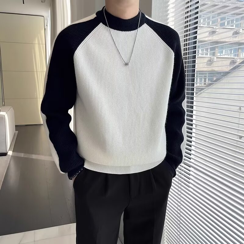 두꺼운 대비 스웨터 남성 가을 및 겨울 새로운 패션 브랜드 긴 소매 니트 베이스 셔츠 캐주얼 탑스토어 가기