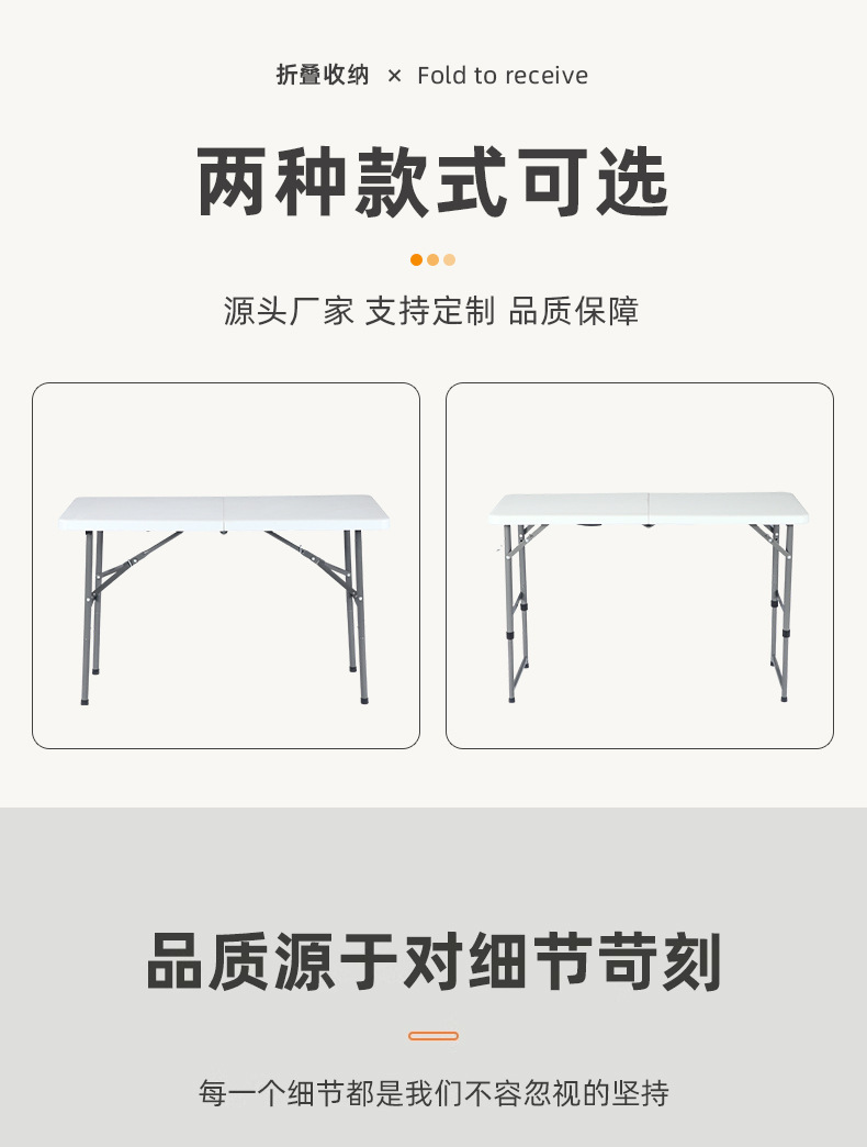 피크닉 테이블 홈 휴대용 긴 테이블 교육 컨퍼런스 블로우 성형 접이식 테이블 야외 야시장 마구간 테이블 접이식 테이블 및 의자스토어 가기
