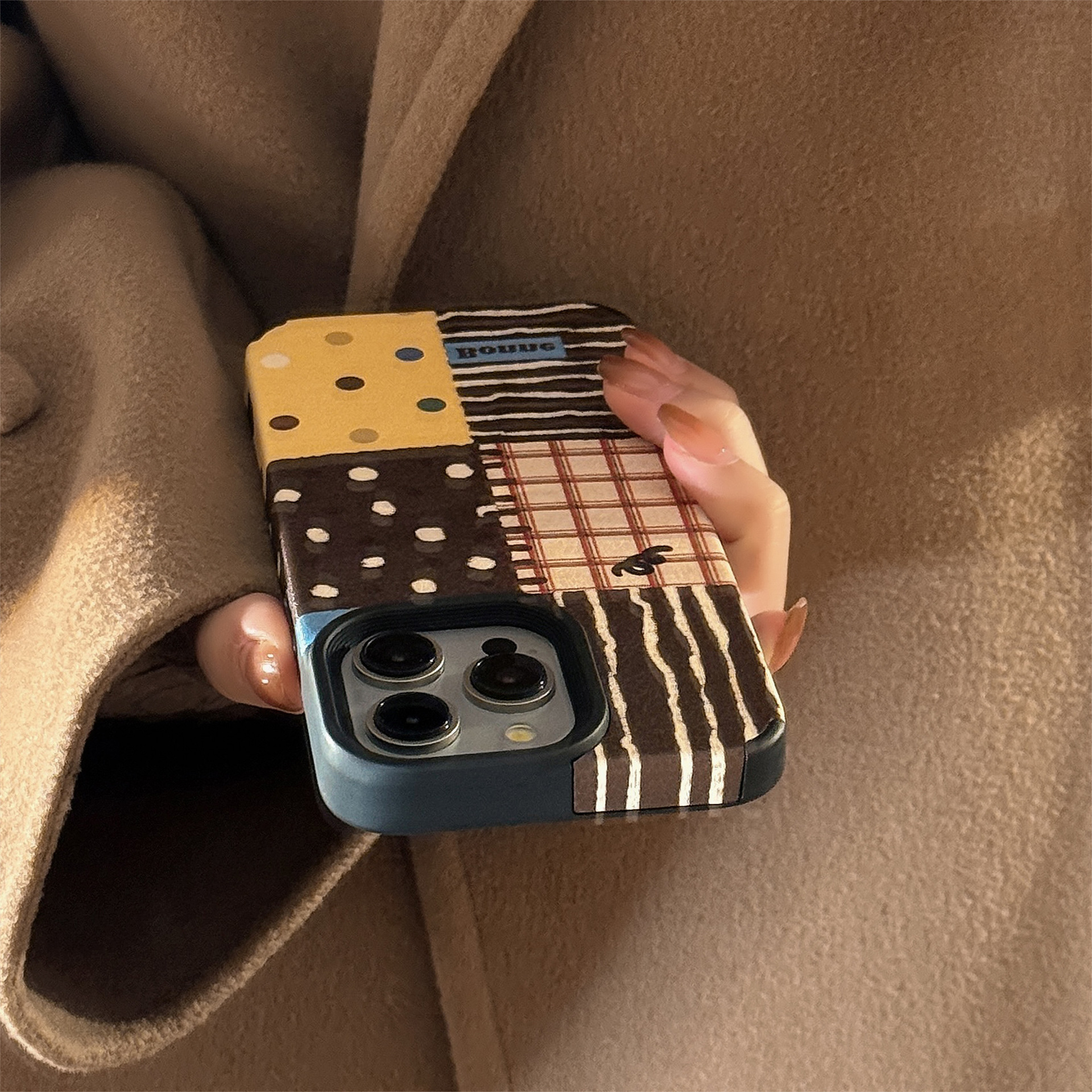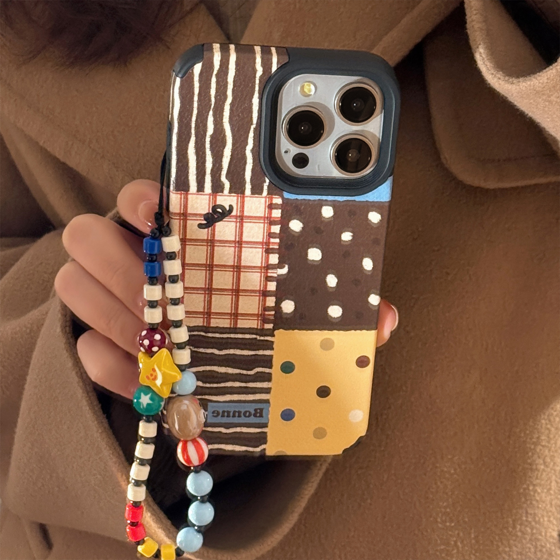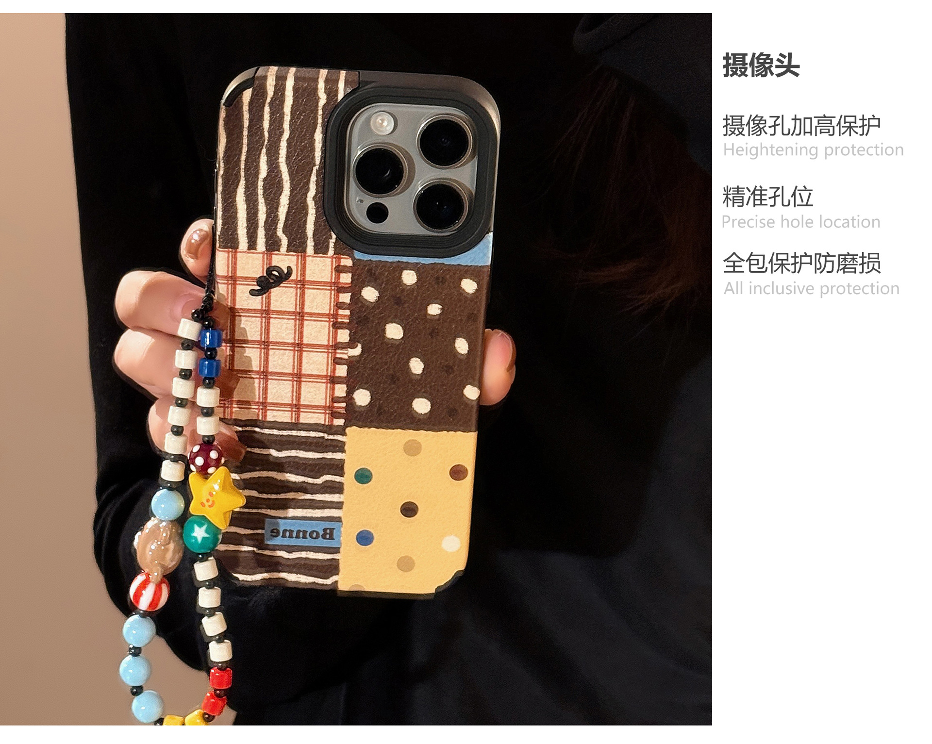 레트로 인스 스타일 물방울 무늬 스티치 아이폰16 애플17 휴대폰 케이스 15프로 맥스 가죽 14 체인 13스토어 가기