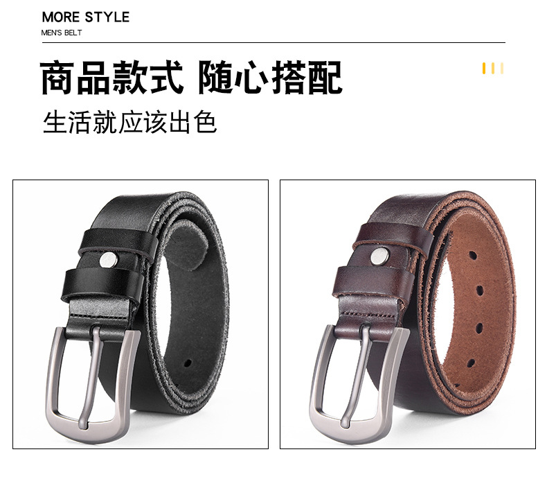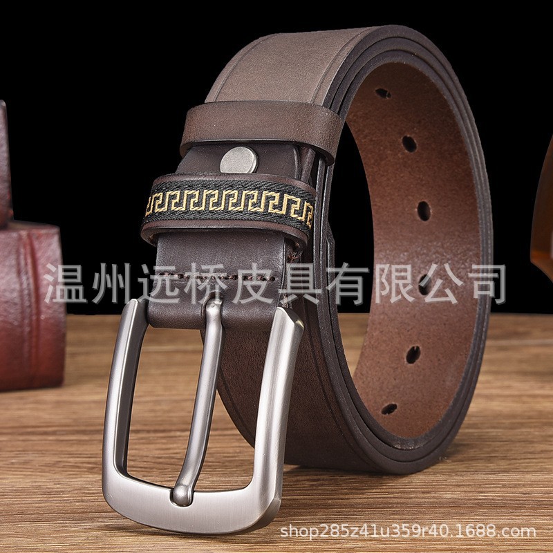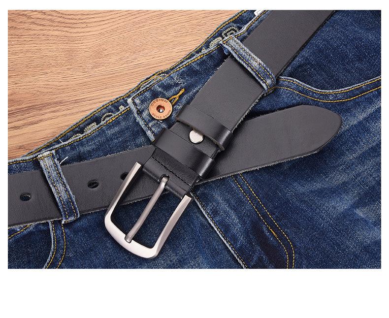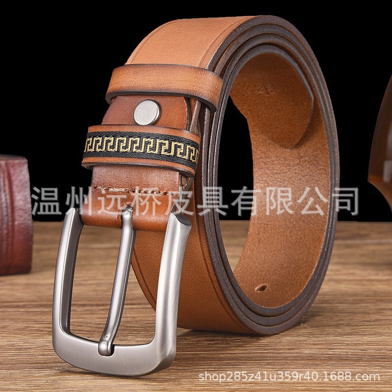 새로운 남성 탑 레이어 Cowhide 벨트 도매 패션 비즈니스 캐주얼 청소년 내구성 가죽 핀 버클 와이드 벨트스토어 가기