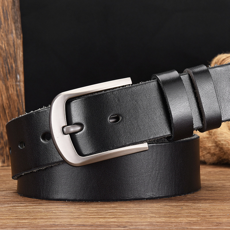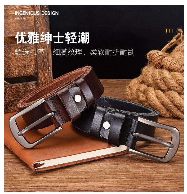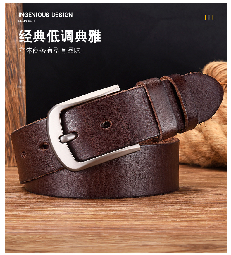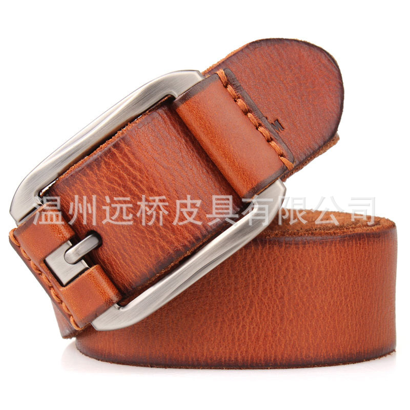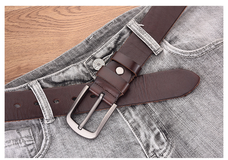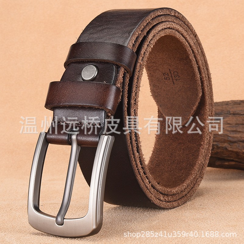 새로운 남성 탑 레이어 Cowhide 벨트 도매 패션 비즈니스 캐주얼 청소년 내구성 가죽 핀 버클 와이드 벨트