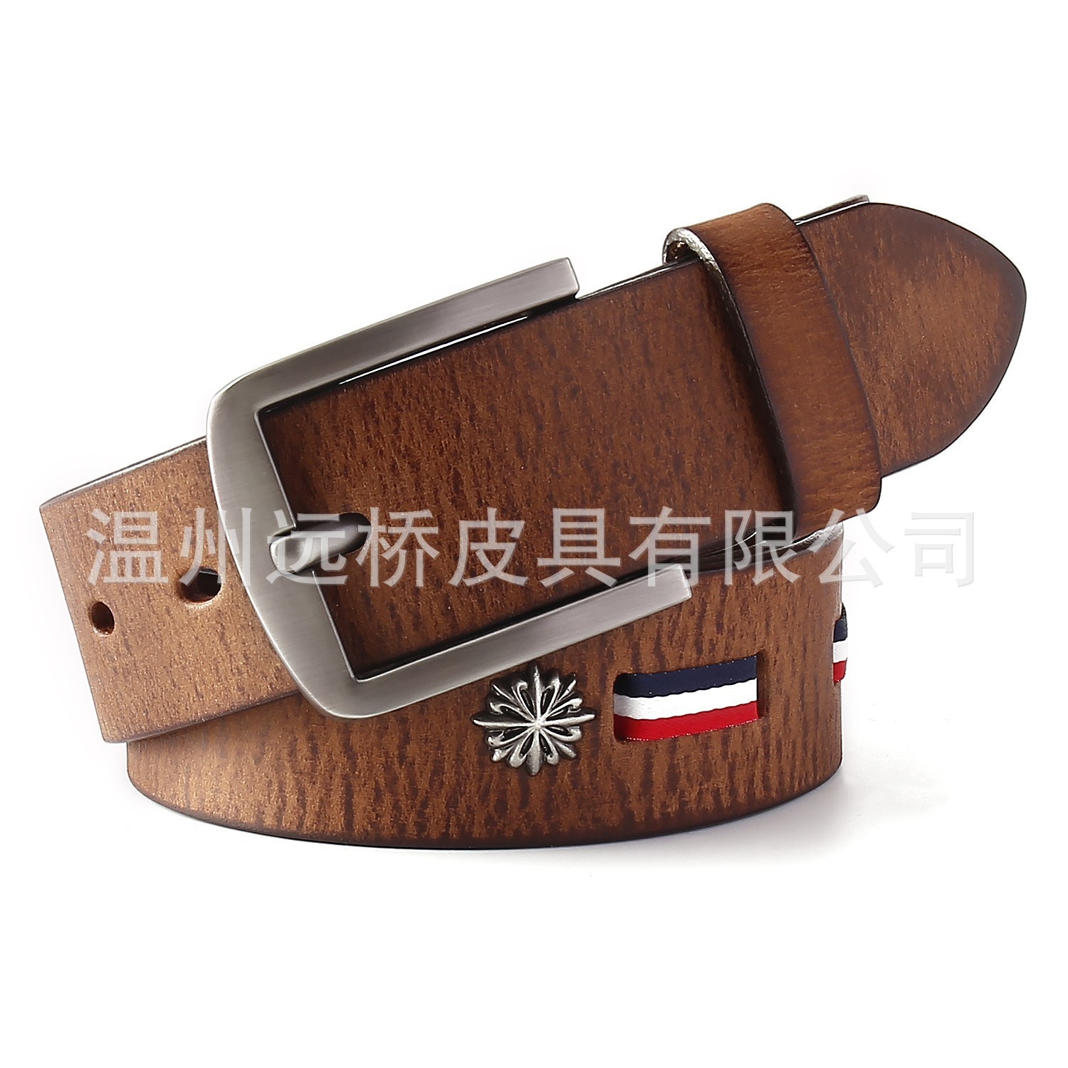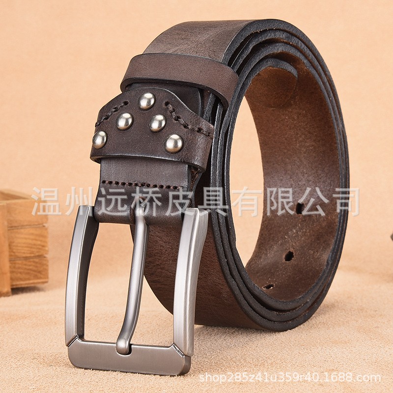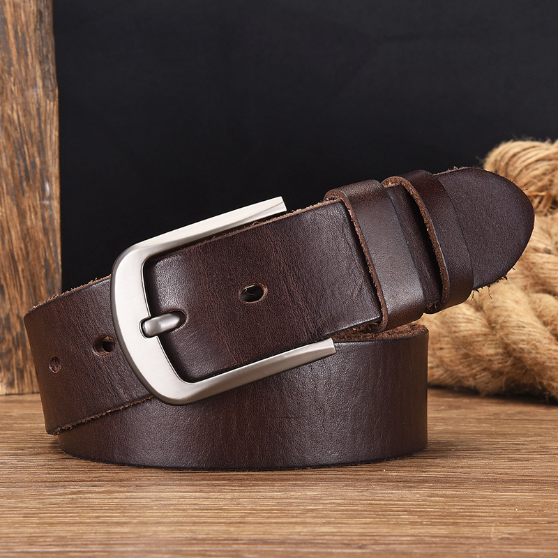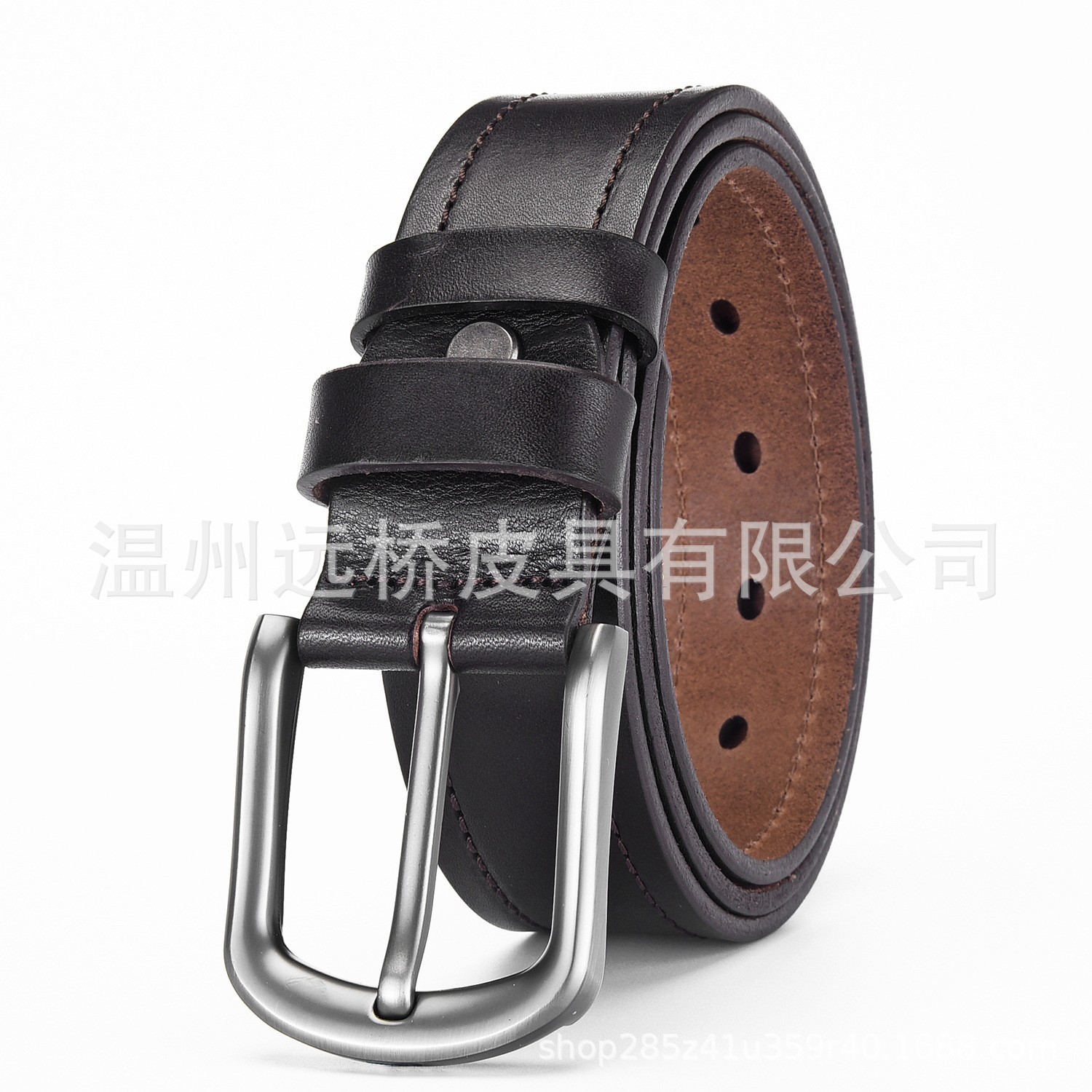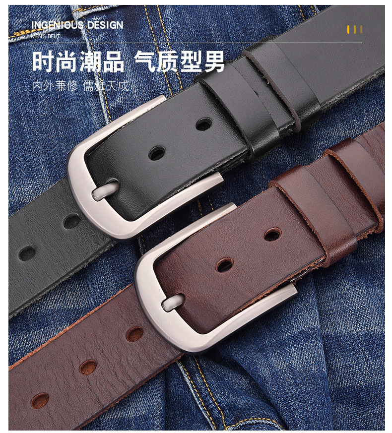 새로운 남성 탑 레이어 Cowhide 벨트 도매 패션 비즈니스 캐주얼 청소년 내구성 가죽 핀 버클 와이드 벨트