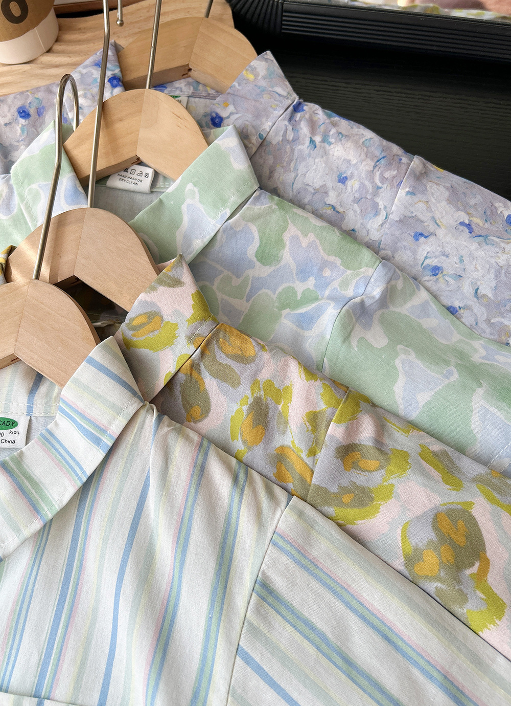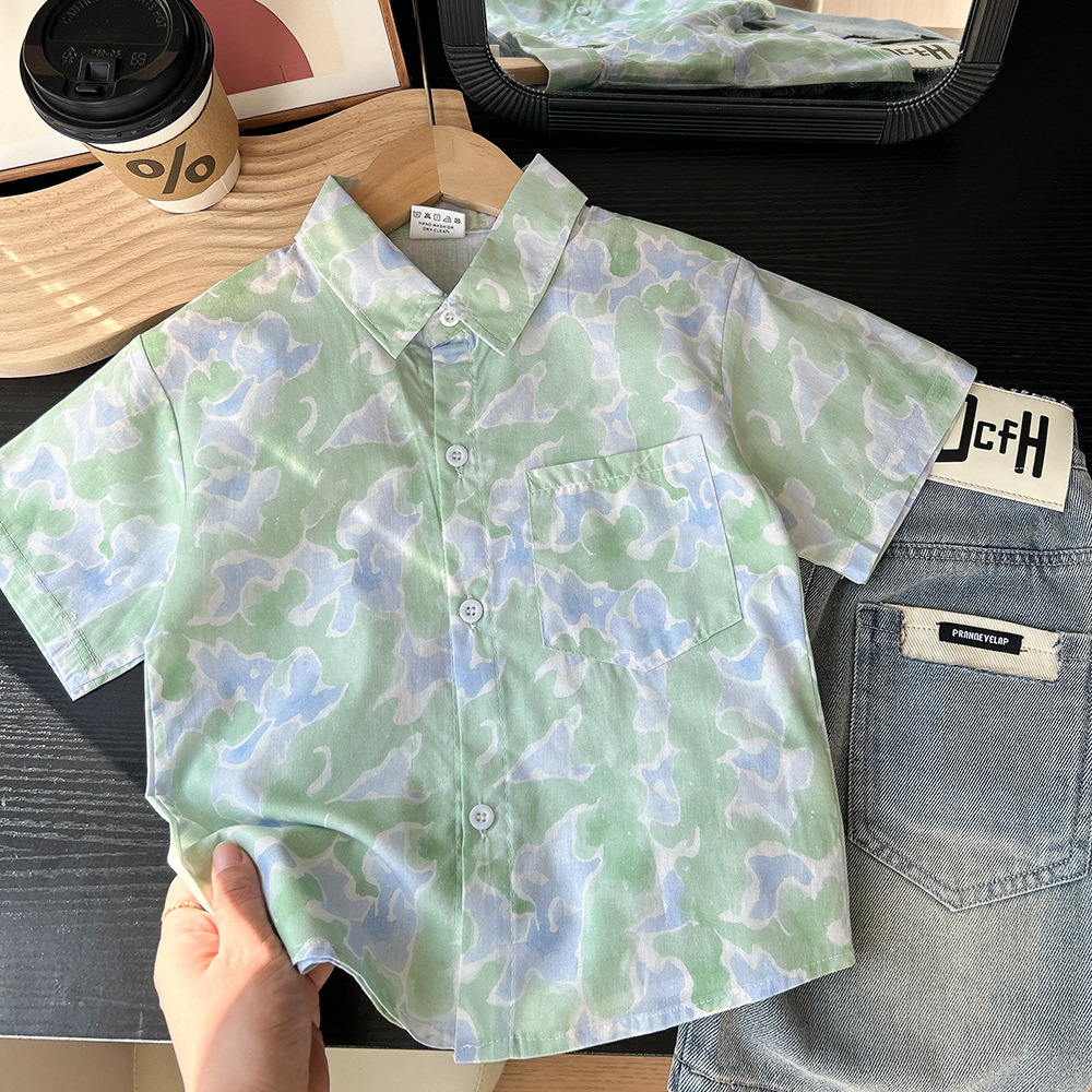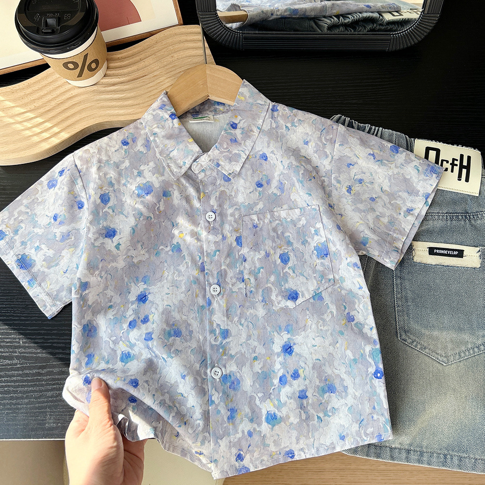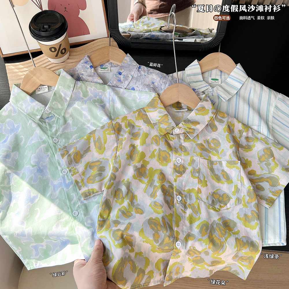 2025 여름 어린이 의류 해변 스타일 홍콩 스타일 꽃 셔츠 짧은 소매 휴가 스타일 짧은 소매 셔츠 재킷 도매