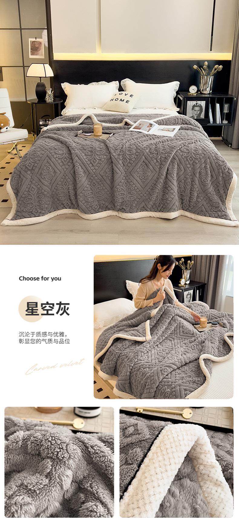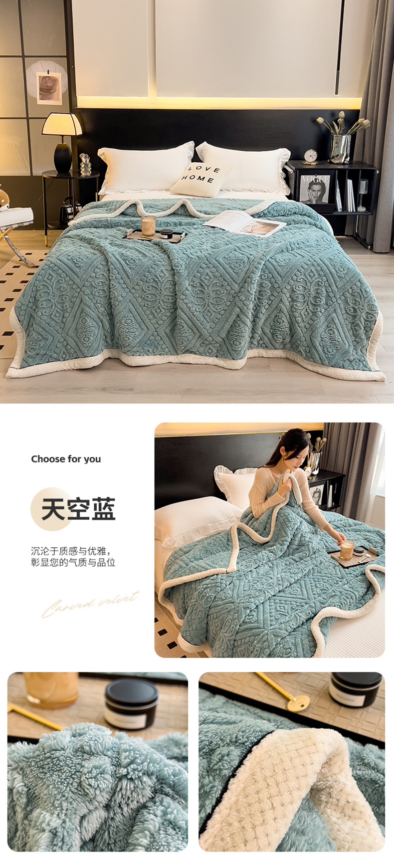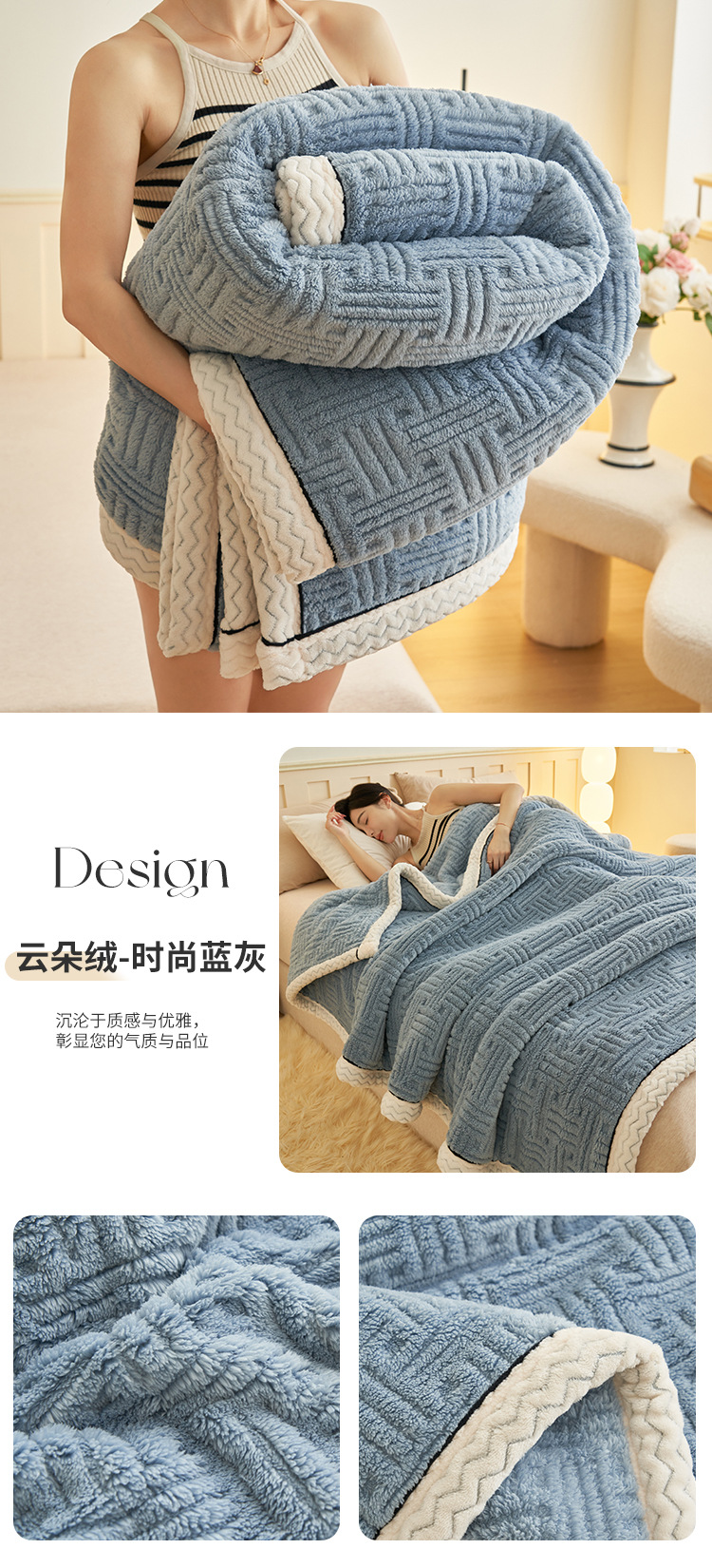 • 자카드 패션 블루 그레이 [양면 플러스 벨벳/피부 친화적이고 따뜻함]