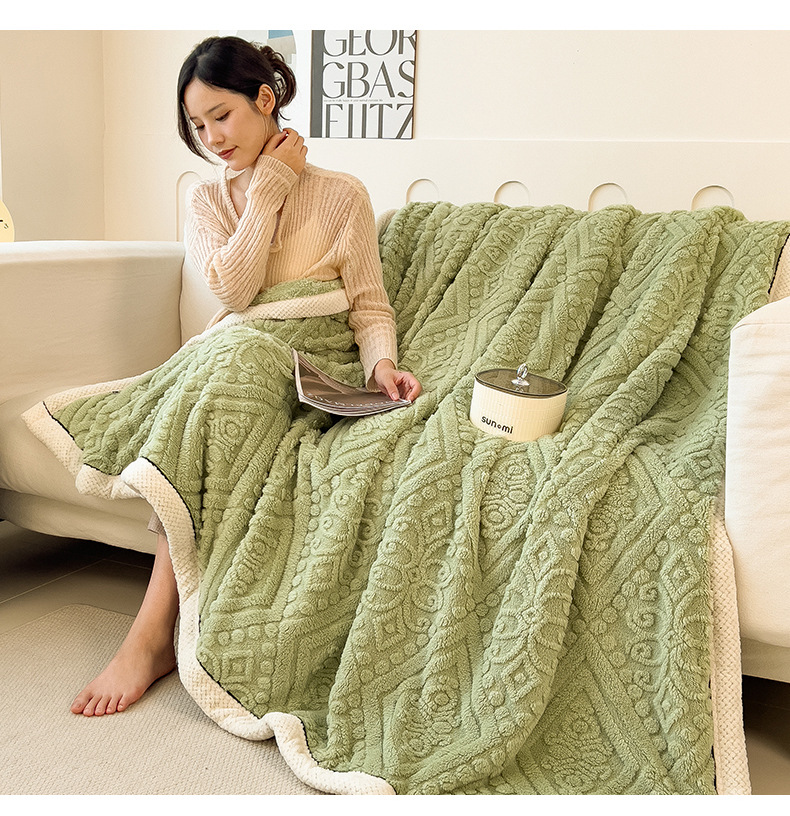 국경 간 플란넬 담요 두꺼운 산호 양털 담요 겨울 사무실 낮잠 담요 단색 우유 양털 담요