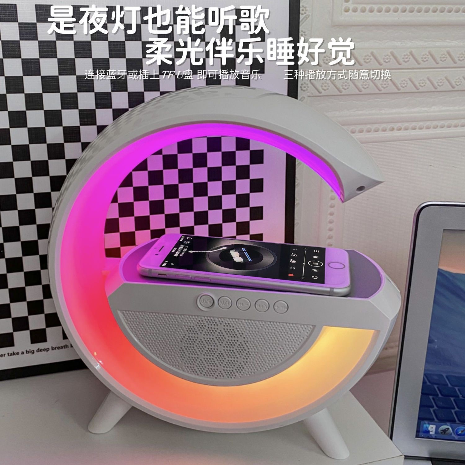 대형 GBT-2301 휴대용 블루투스 스피커, 대용량 사운드, 무드등, 충전식 무선 서브우퍼 스피커