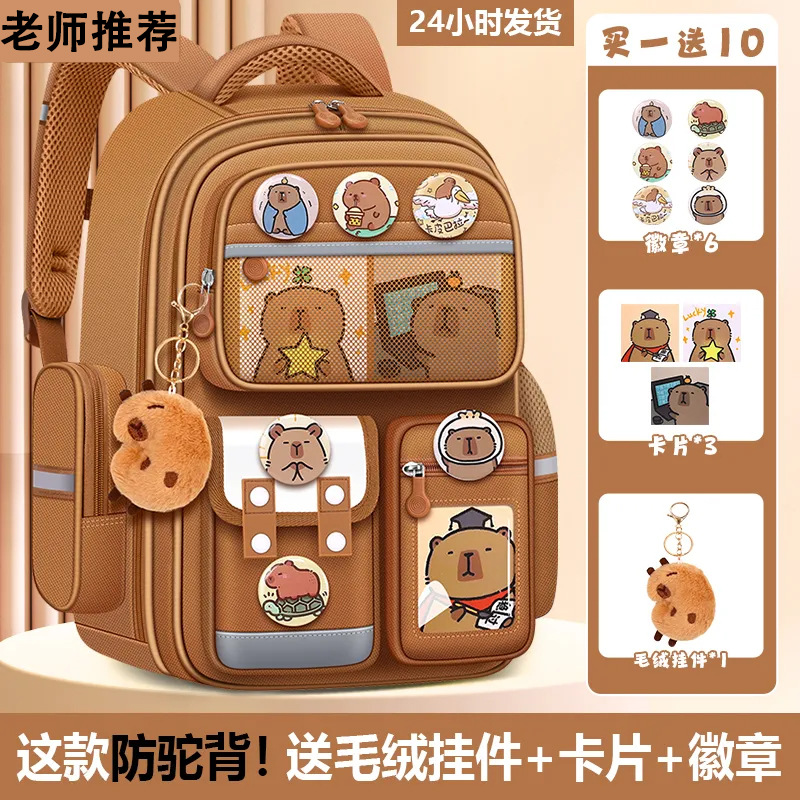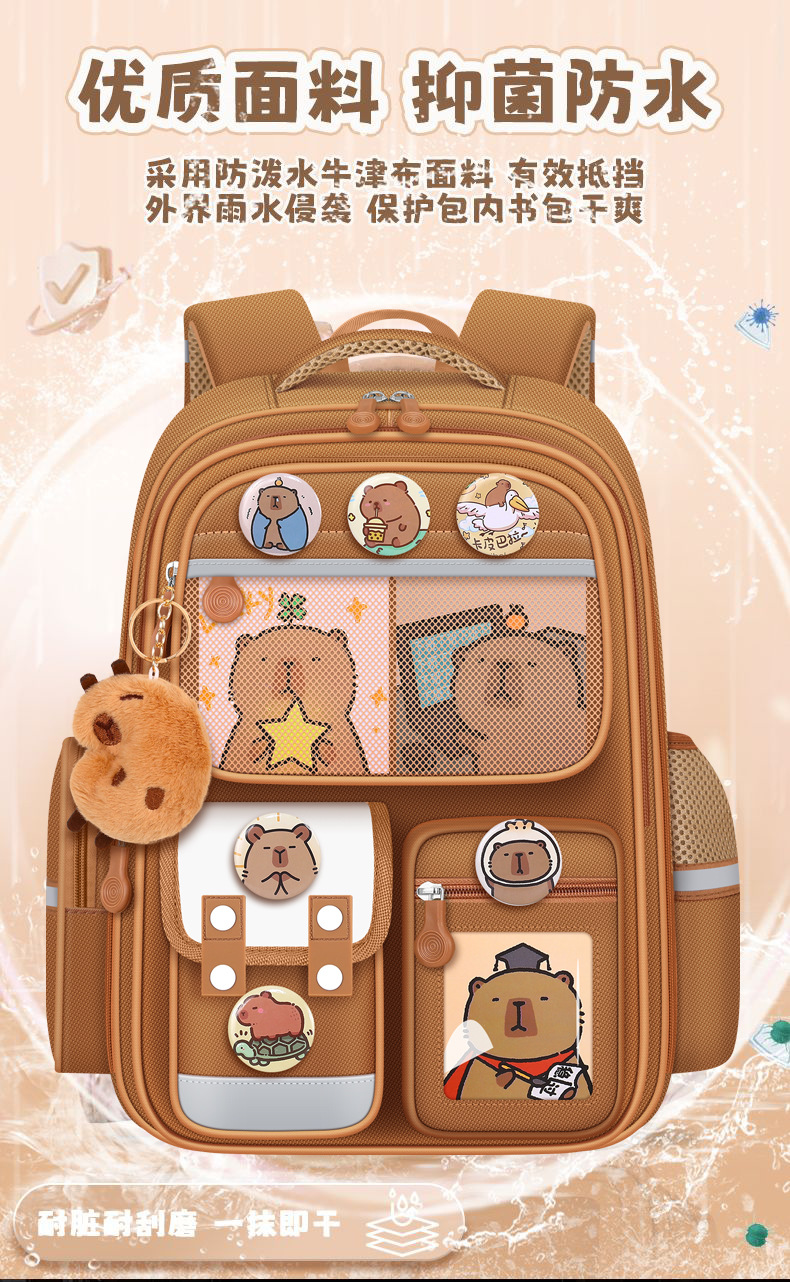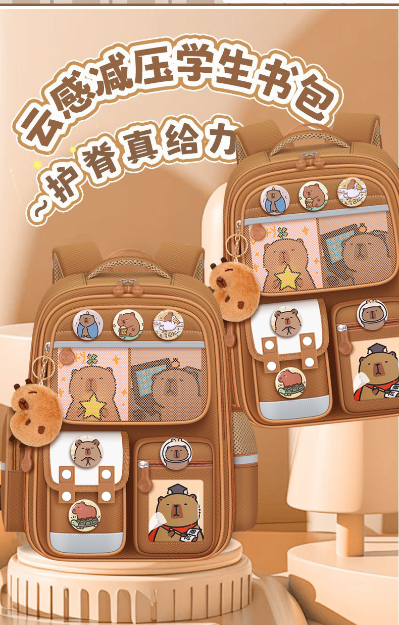 1-3-6 학년 어린이 학교 가방 대용량 Kapibala 남성과 여성 초등학교 배낭 만화 학교 배낭스토어 가기