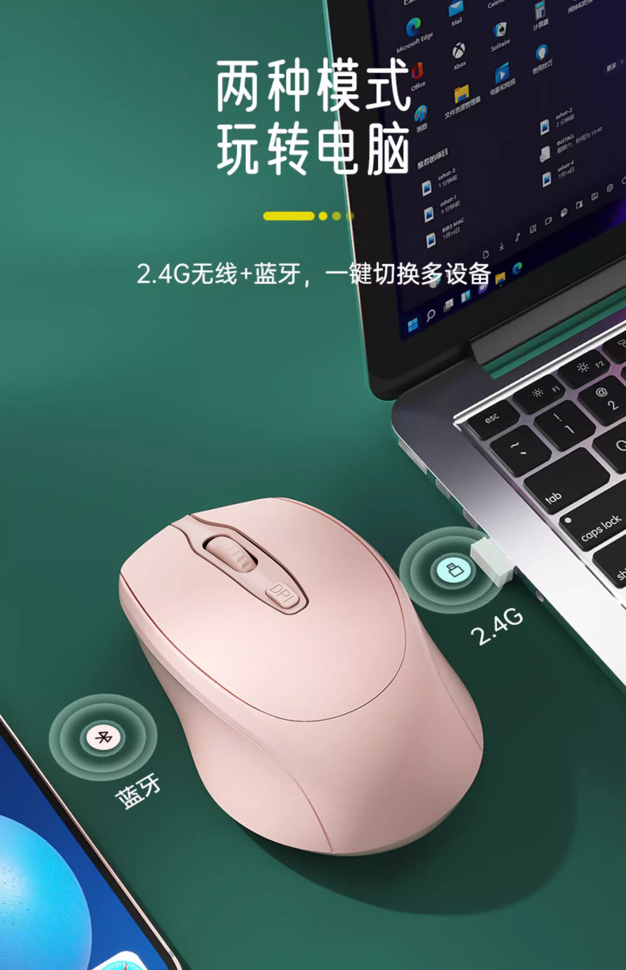 재고 음소거 무선 마우스 충전식 듀얼 모드 블루투스 마우스 선물 컴퓨터 사무실 Macron 멀티 컬러 옵션