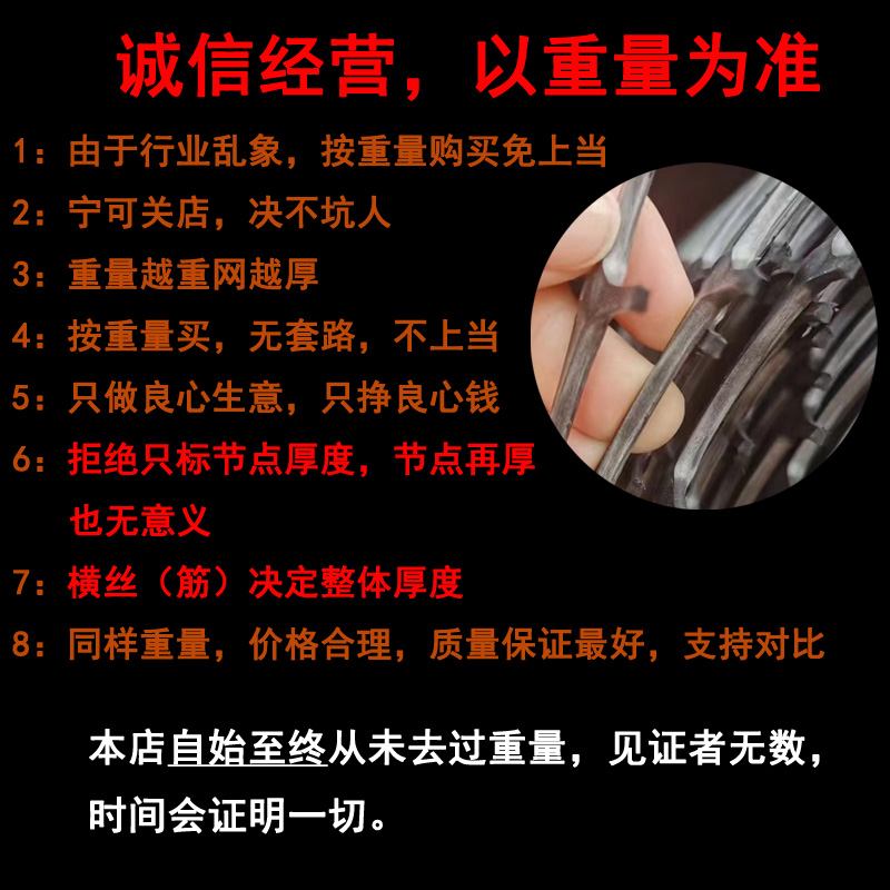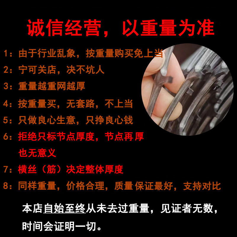 • 1.2m 높이 50m 길이 3.5cm 구멍 범용 엑스트라 하드 및 두꺼운 모델 18kg 가로 와이어 2.6 두께는 다른 것보다 두껍고 무겁습니다.