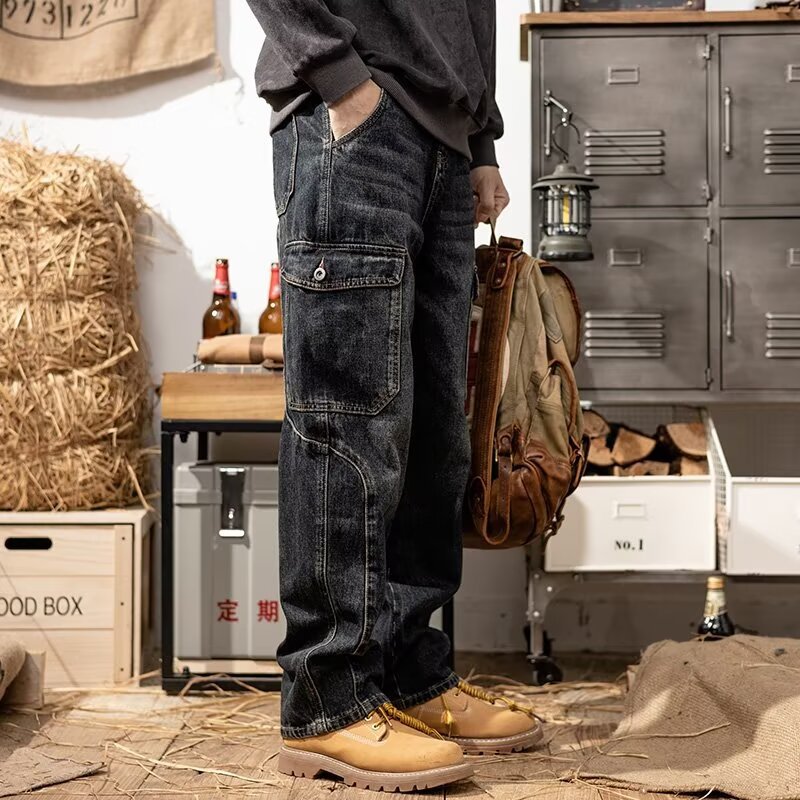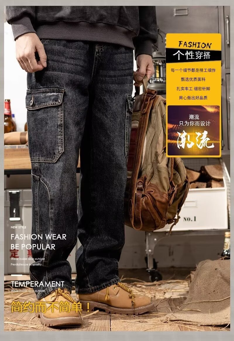 주의 바지 멀티 포켓 훈련 청바지 남성 플러스 사이즈 건설 현장 작업 용접기 내마모성 노동 보호 바지스토어 가기
