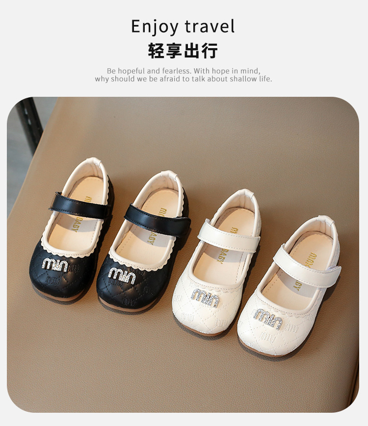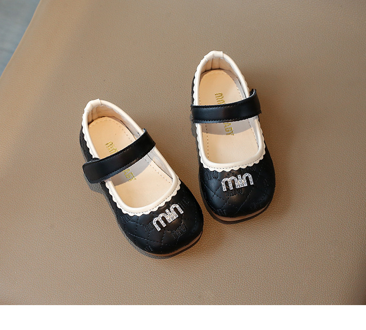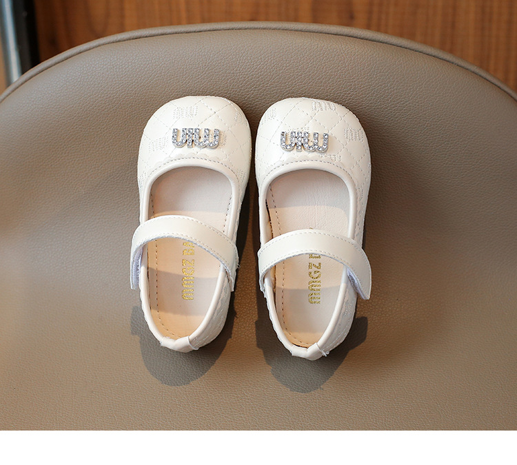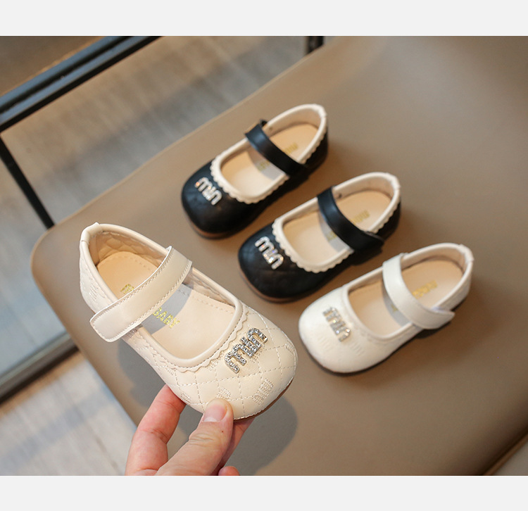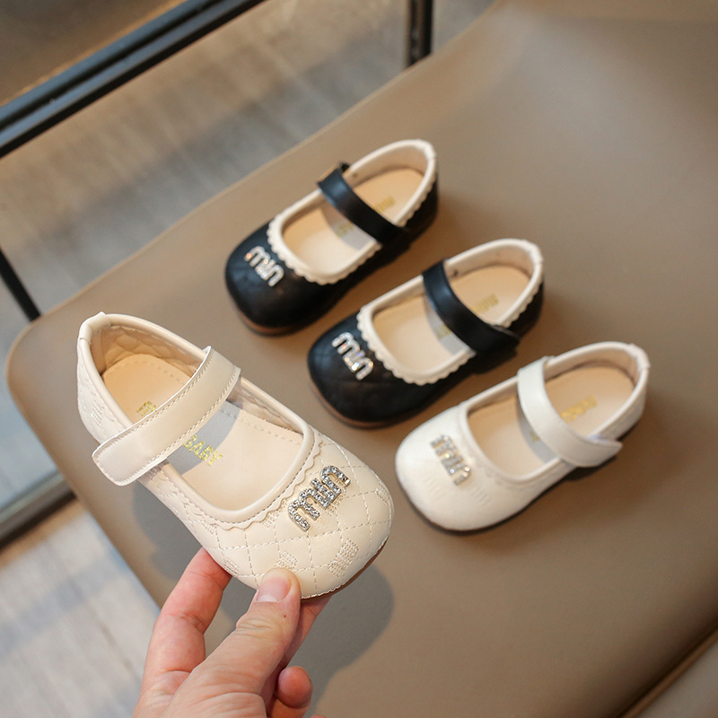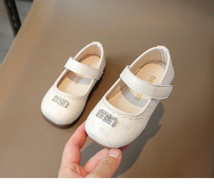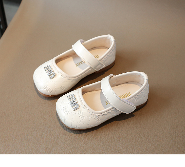 어린이 신발 2025 봄 새로운 한국 스타일 소녀 라인석 편지 공주 신발 아기 부드러운 단독 조커 작은 가죽 신발스토어 가기
