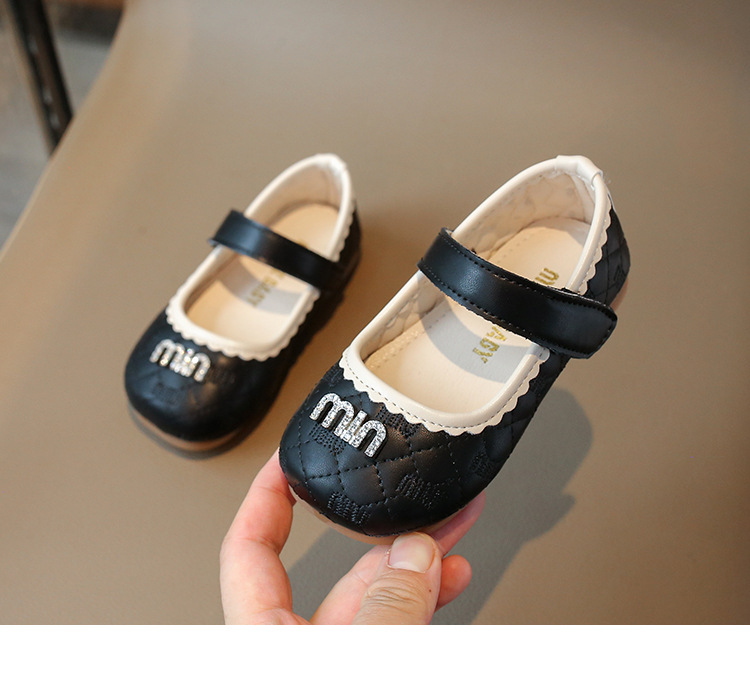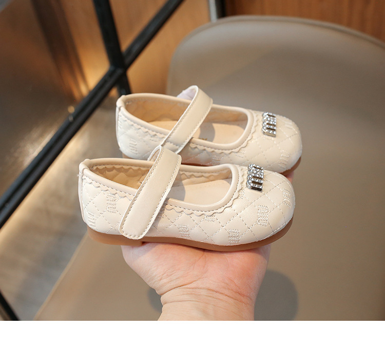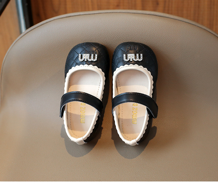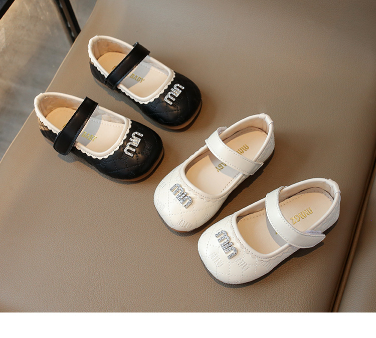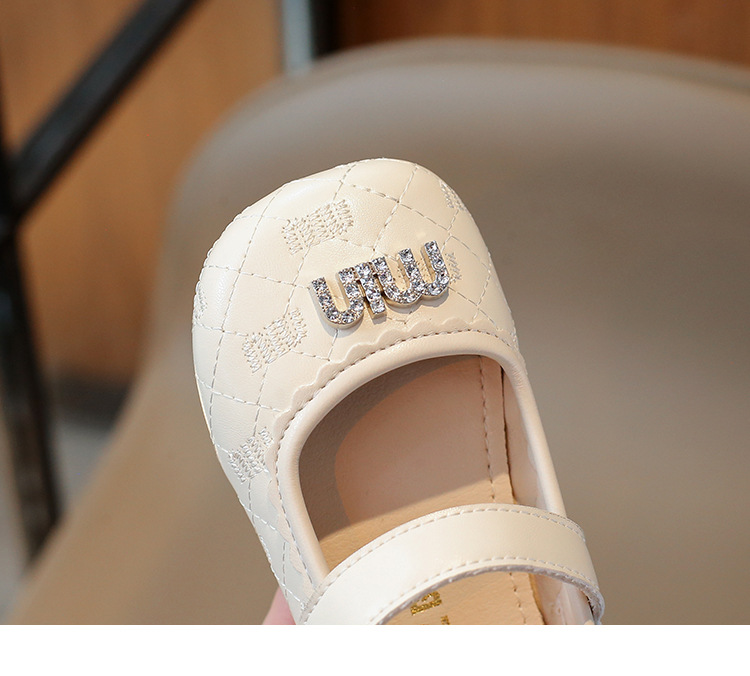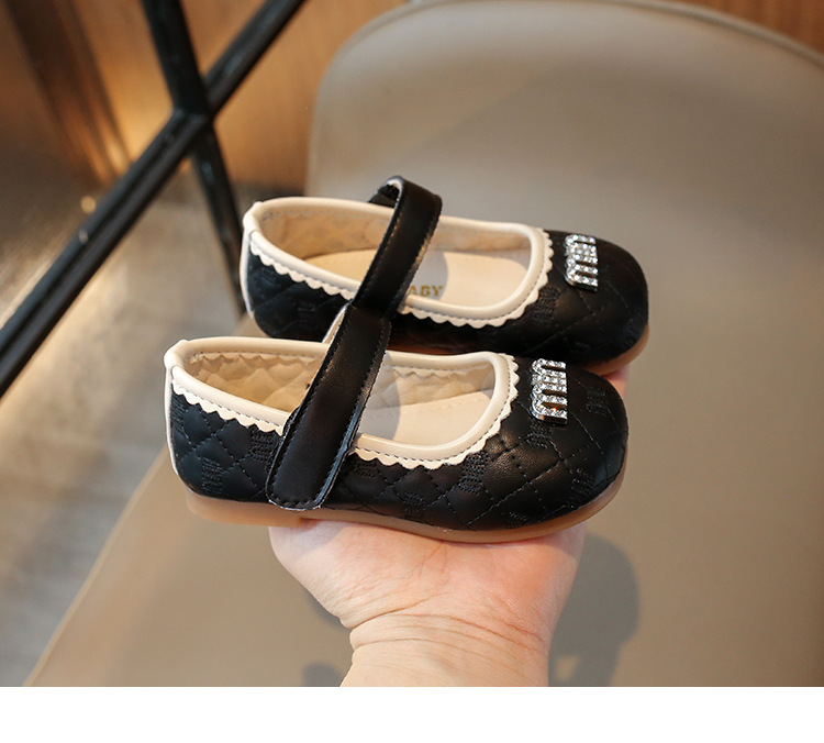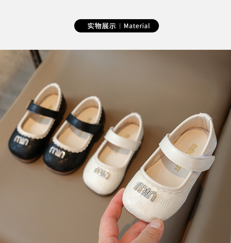 어린이 신발 2025 봄 새로운 한국 스타일 소녀 라인석 편지 공주 신발 아기 부드러운 단독 조커 작은 가죽 신발스토어 가기