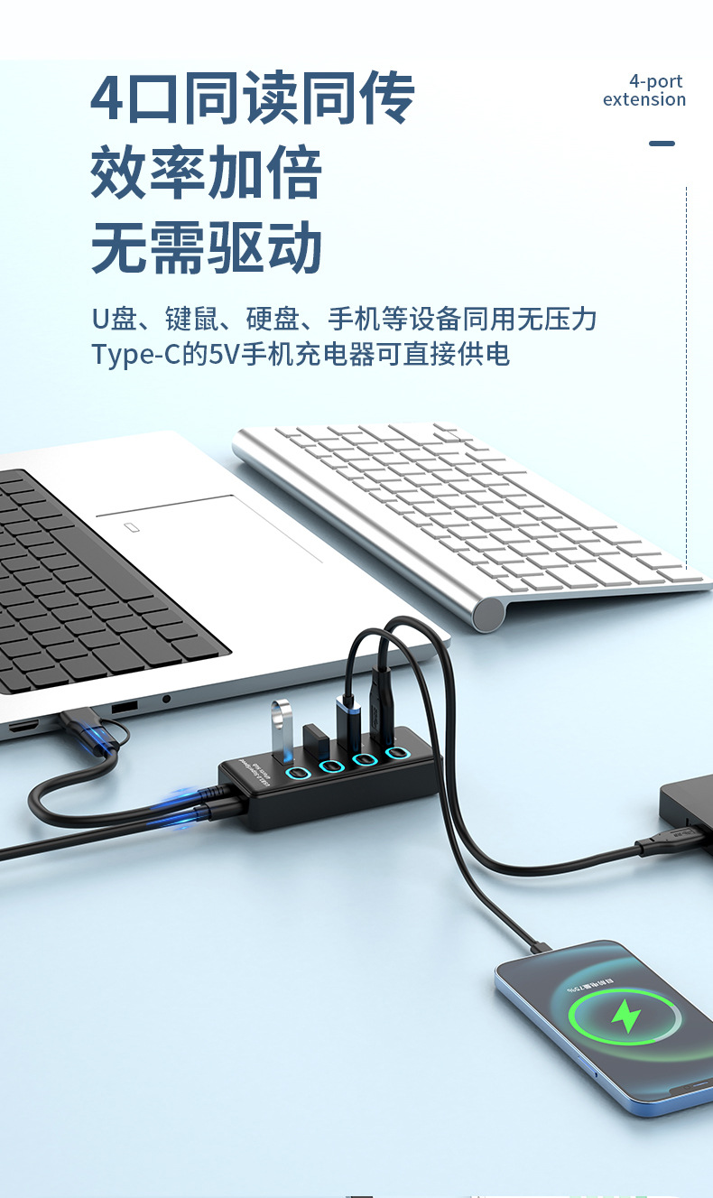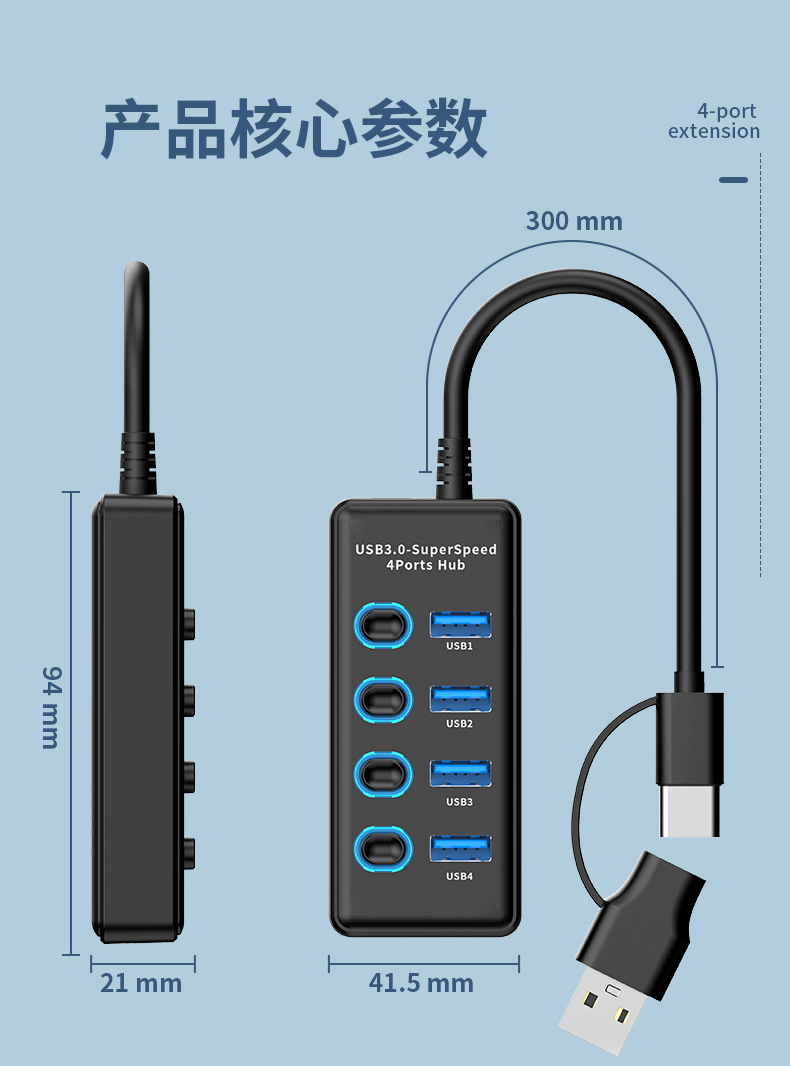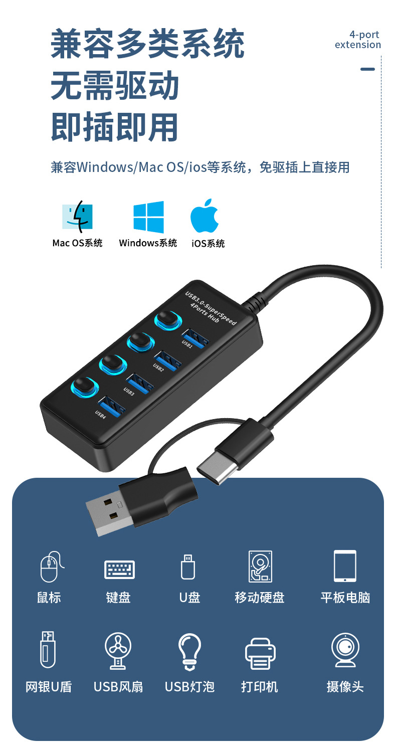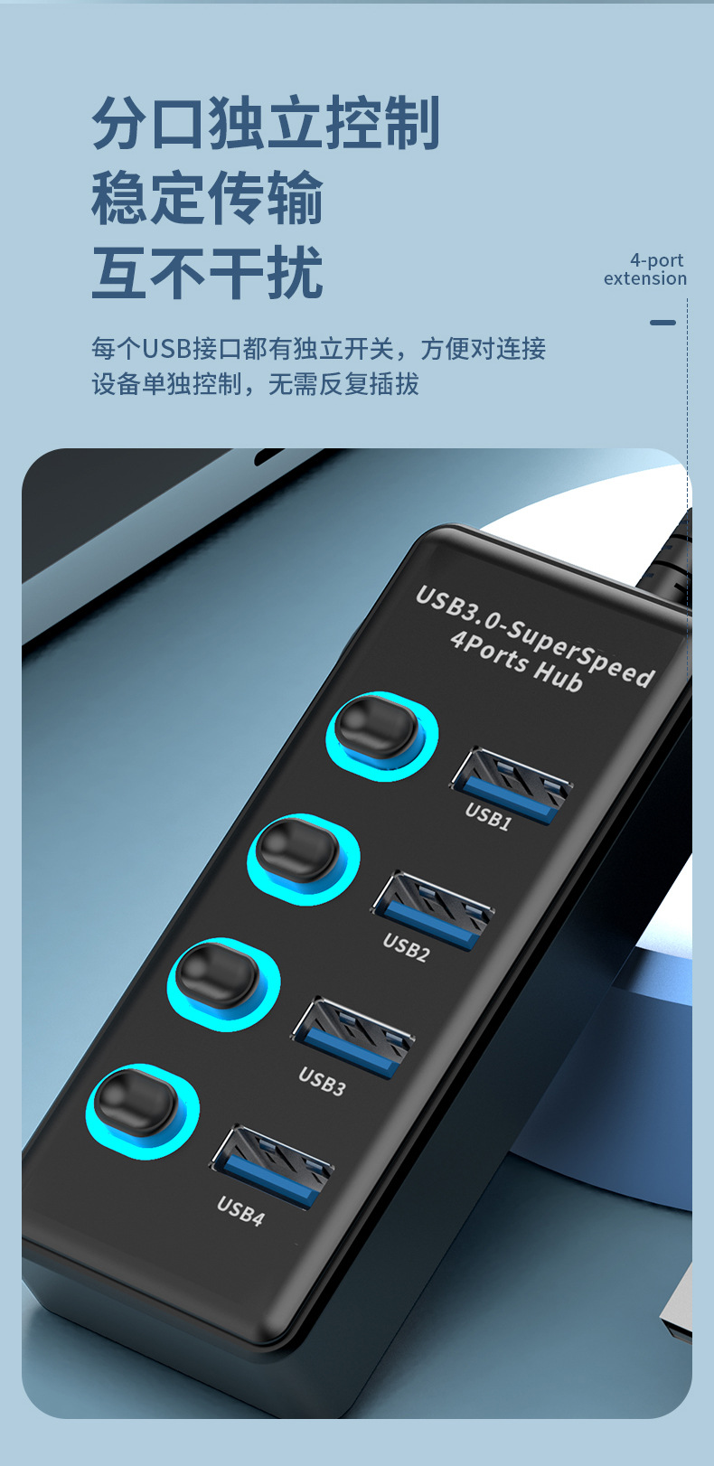 2 대 1 USB 허브 3.0 스플리터 확장 고속 도킹 스테이션 4 포트 독립 스위치 도킹 스테이션
