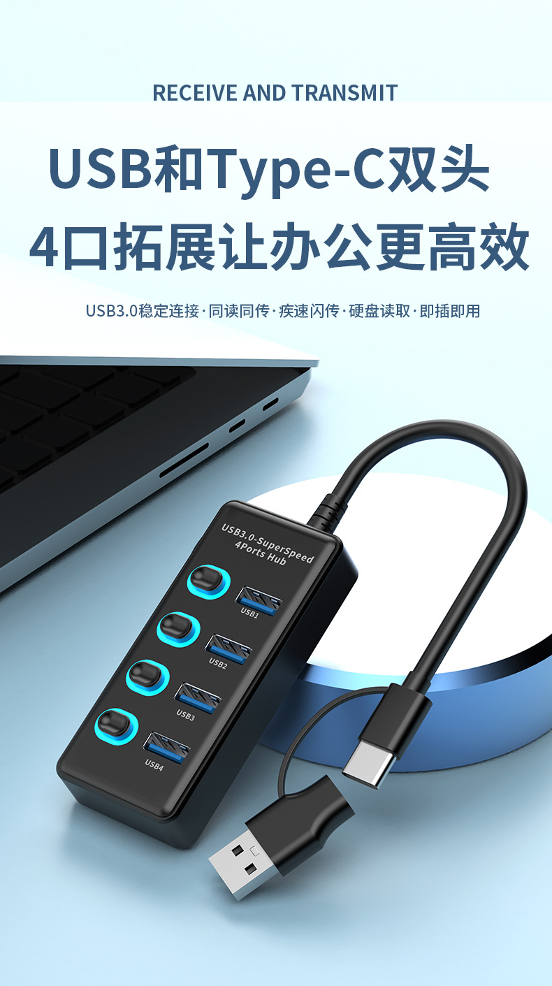 2 대 1 USB 허브 3.0 스플리터 확장 고속 도킹 스테이션 4 포트 독립 스위치 도킹 스테이션스토어 가기