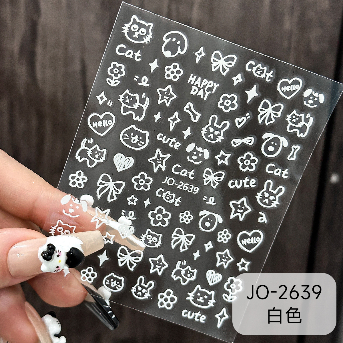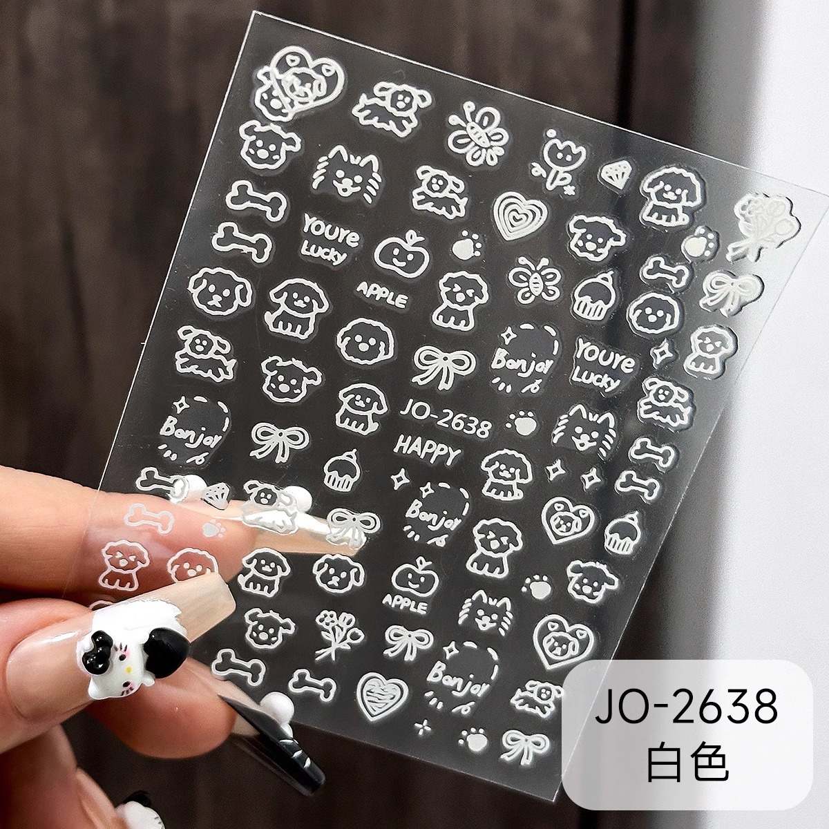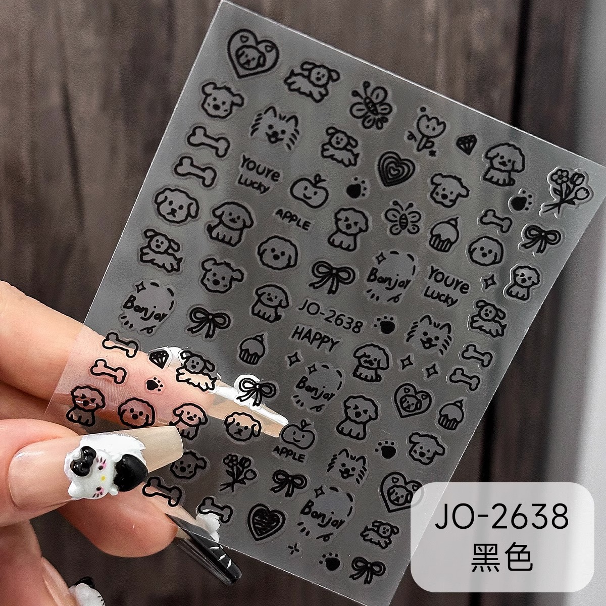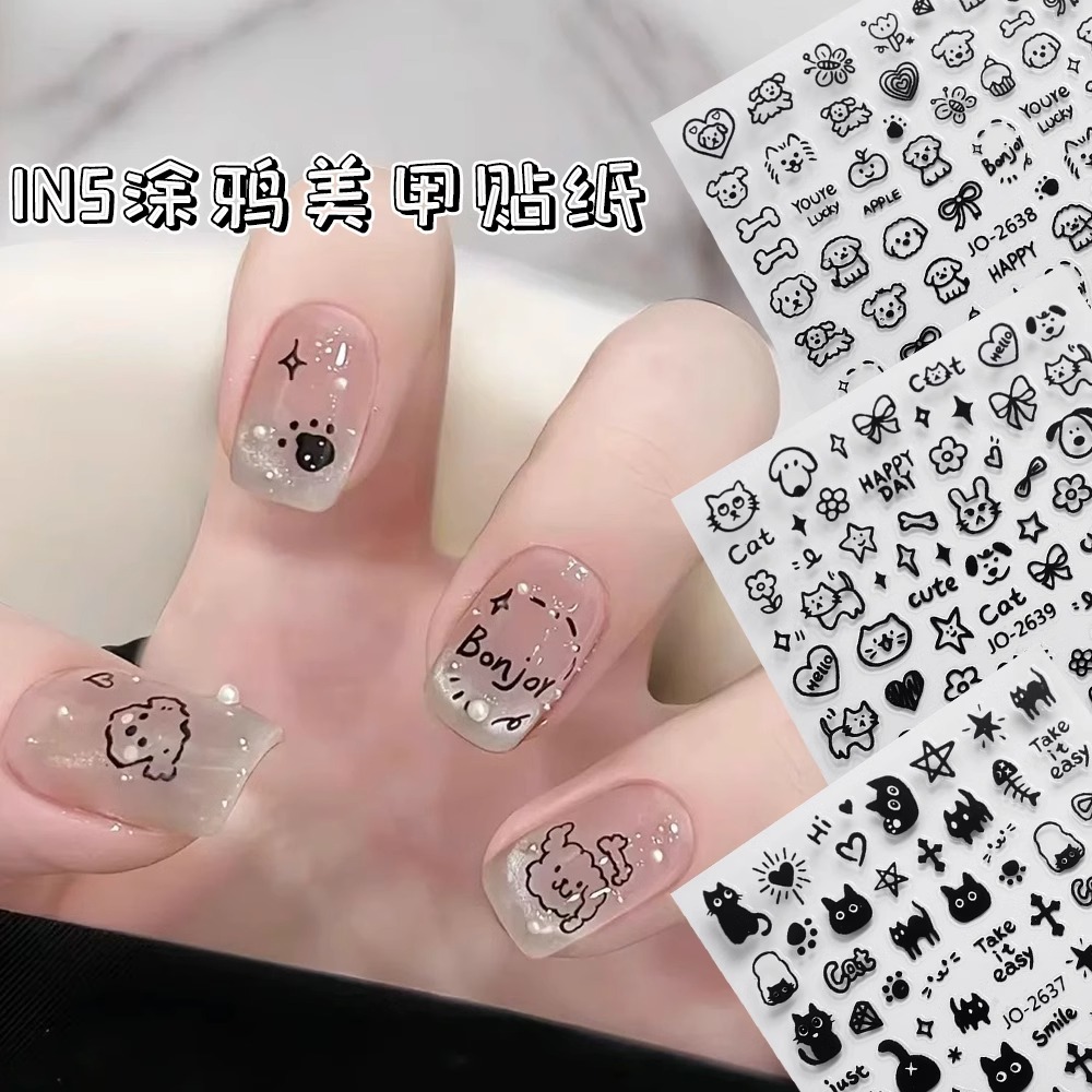 사이버 연예인 흑백 그래피티 새끼 강아지 유치한 만화 네일 아트 스티커 귀여운 내부 바람 접착 DIY 네일 장식