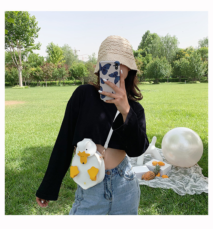크로스보더 인기 오리 가방 2026년 신상 귀여운 소녀용 미니 숄더백 일본풍 패션 배색 숄더/크로스백스토어 가기