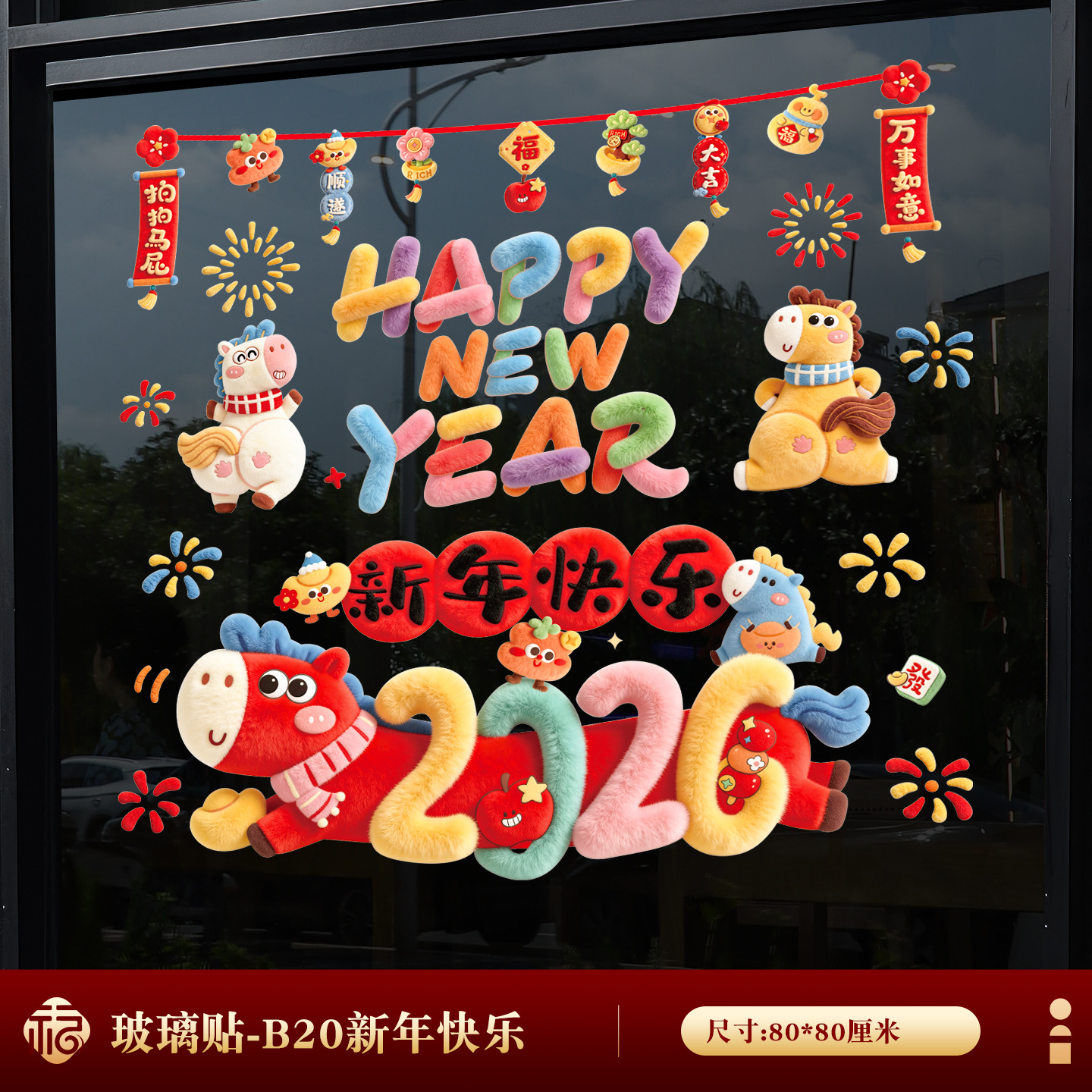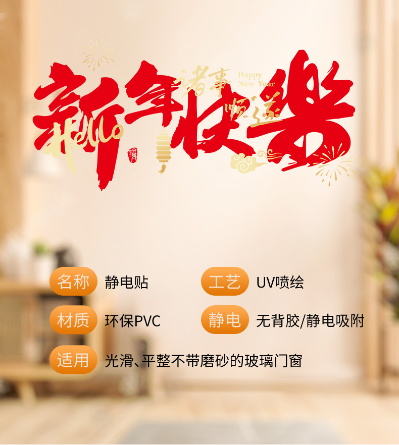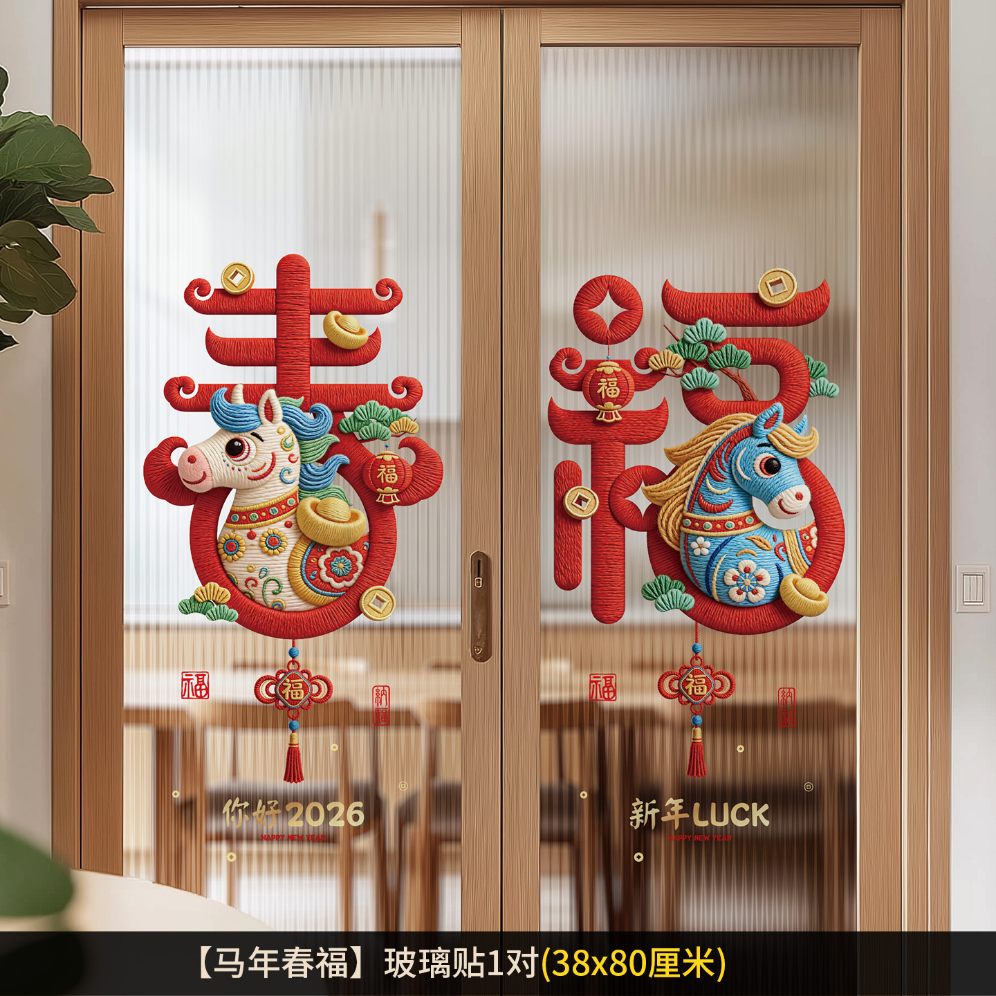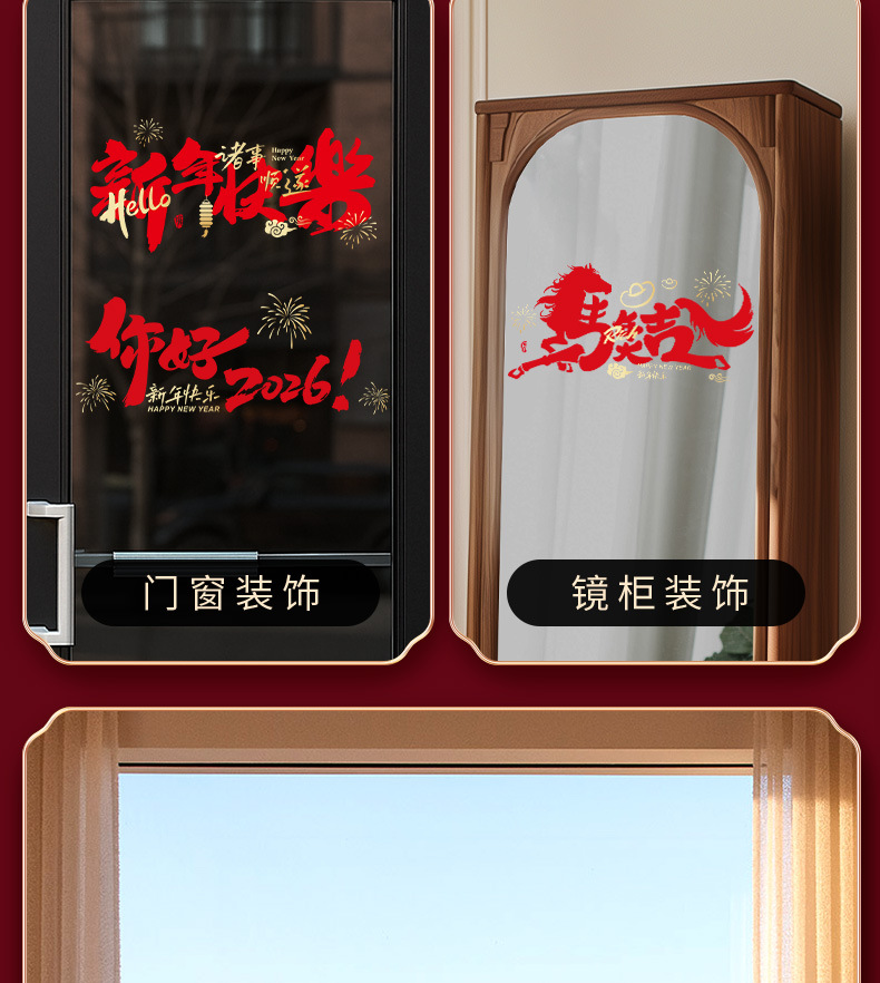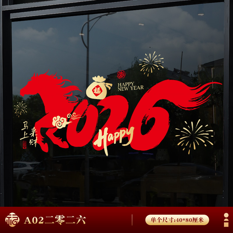 2026년 말년 설날 정전기 스티커, 거실 창문 분위기 장식, 창문 장식용 유리 스티커