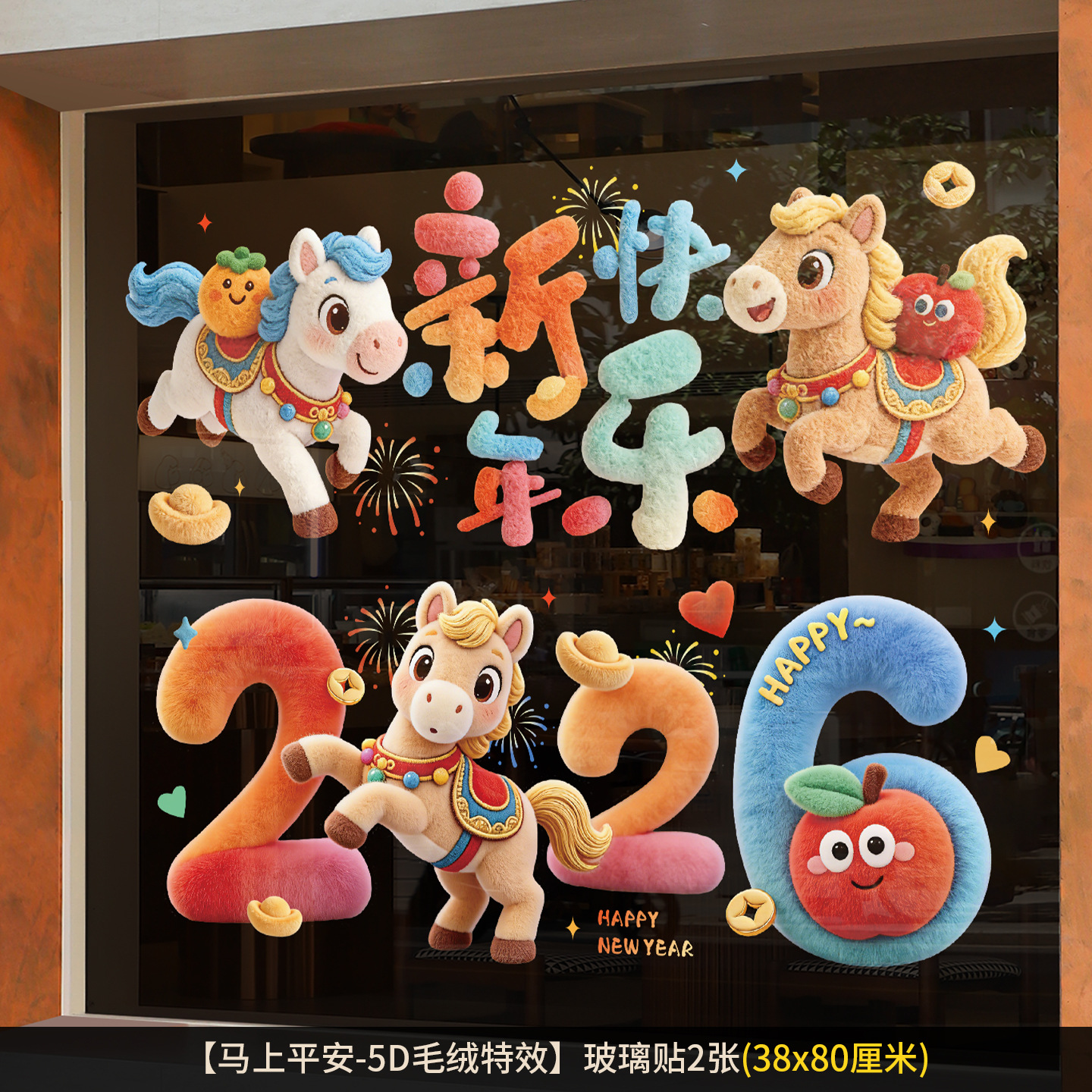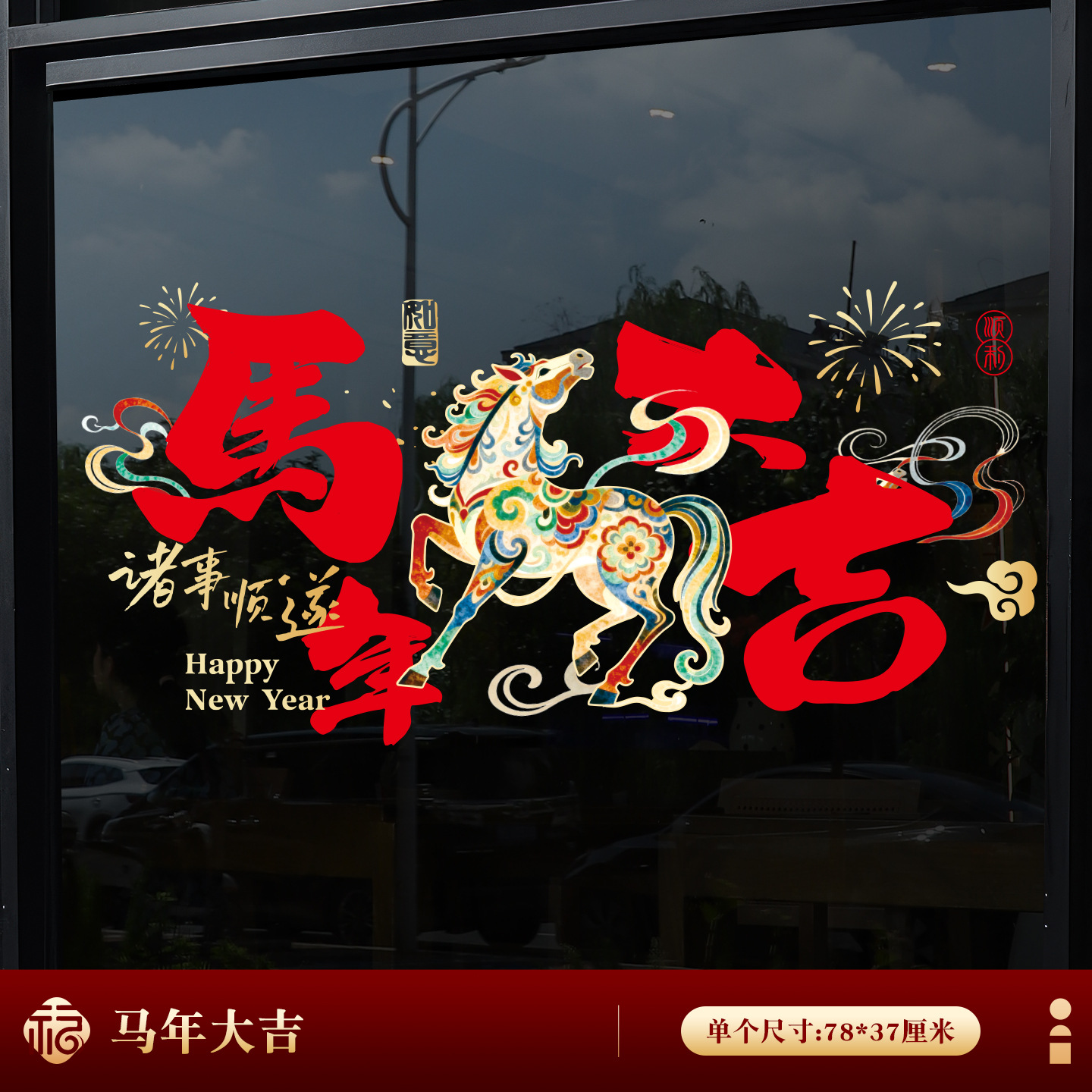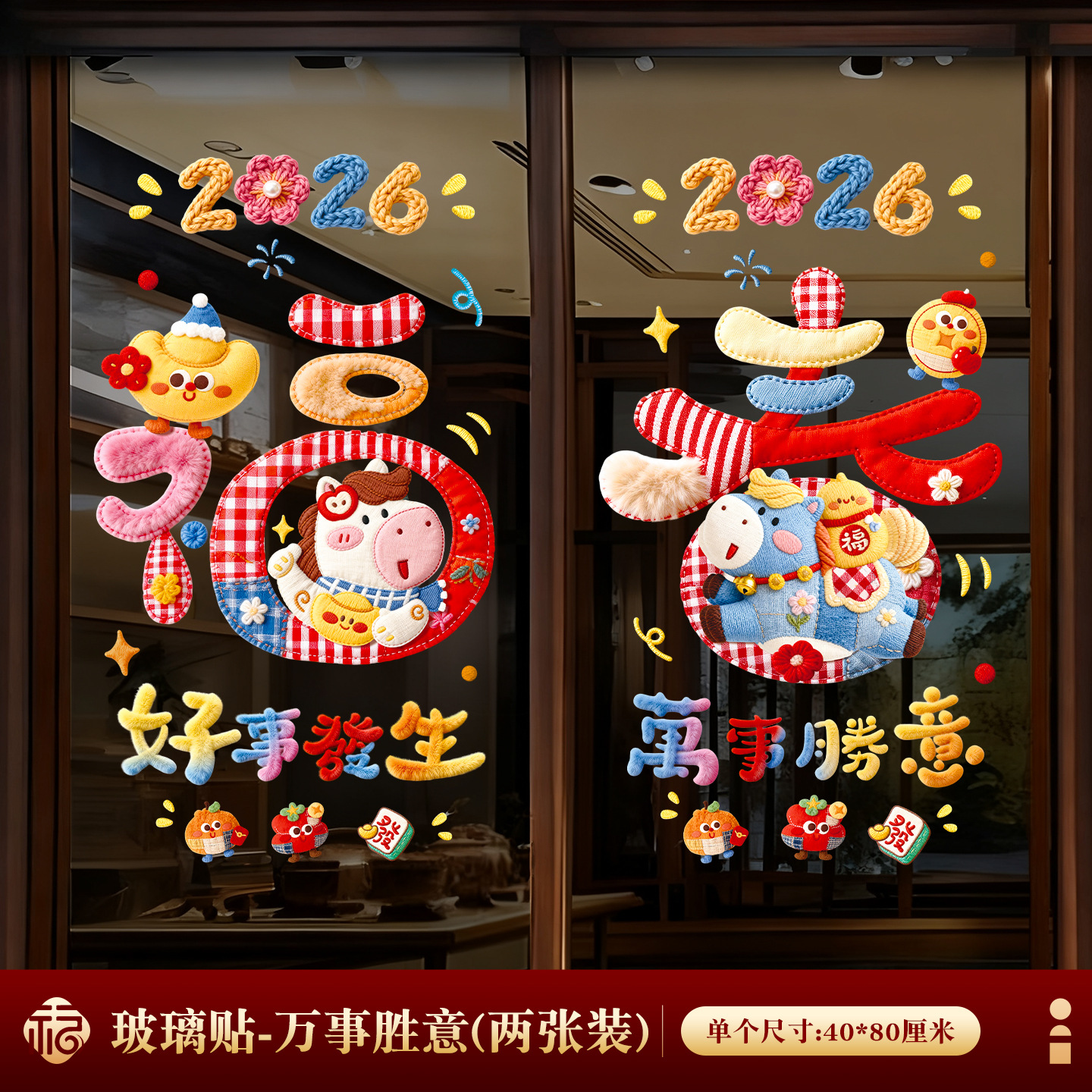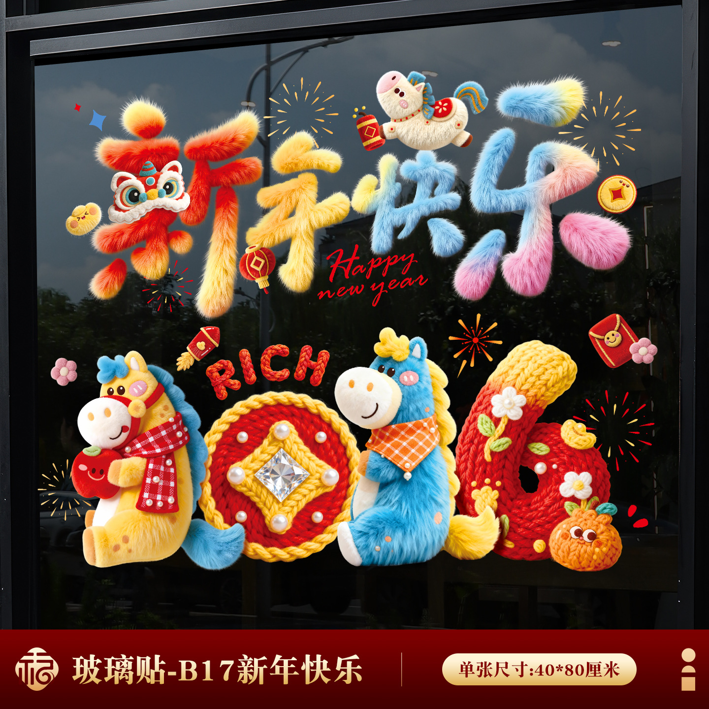 2026년 말년 설날 정전기 스티커, 거실 창문 분위기 장식, 창문 장식용 유리 스티커