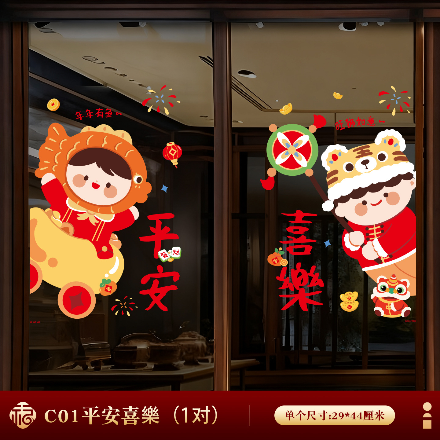 • 【연년유여】 유리창 스티커 (2매)