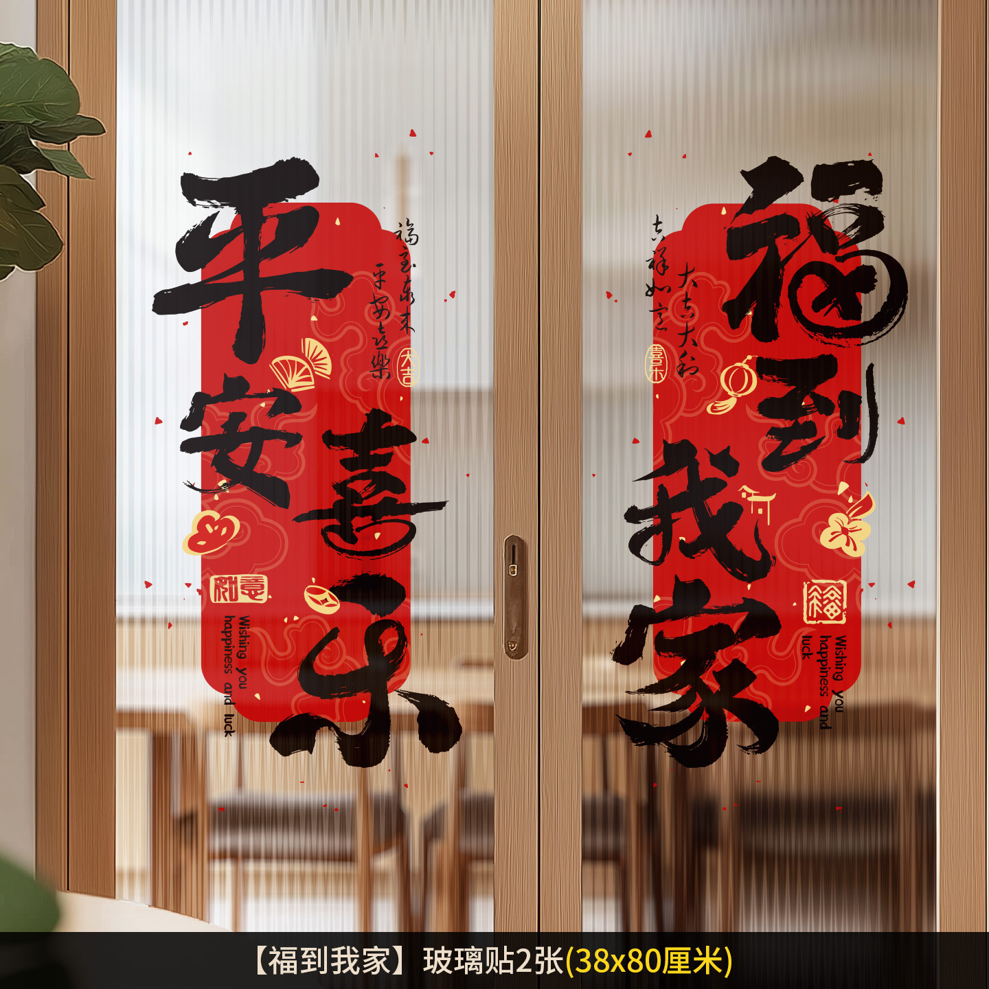 • 【복과 기쁨이 가득】 유리창 스티커 (2매)