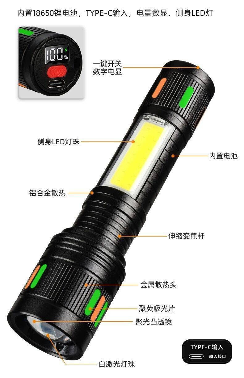 국경 간 폭발 흰색 레이저 손전등 알루미늄 합금 측면 조명 손전등 줌 조명 다기능 작업 램프스토어 가기