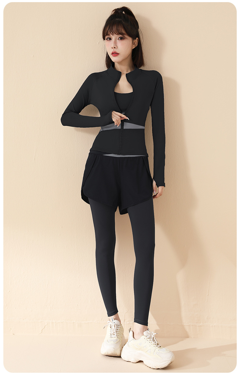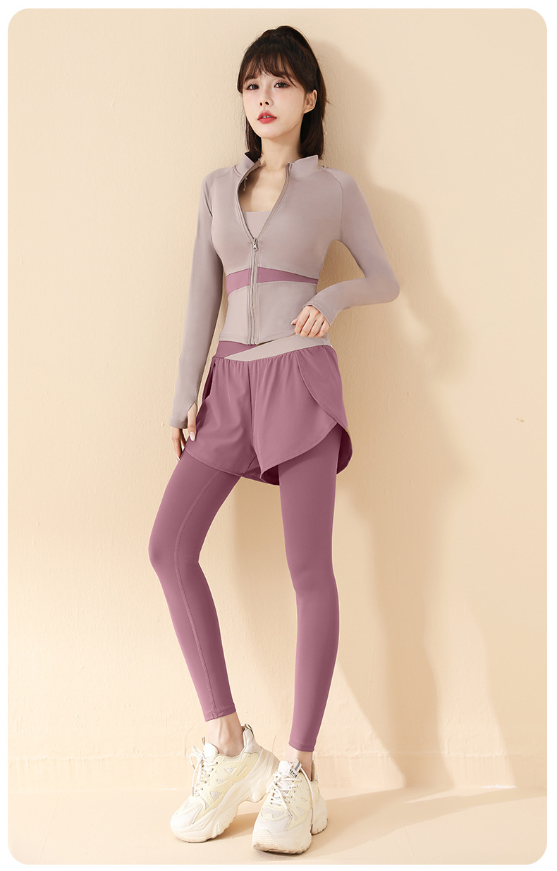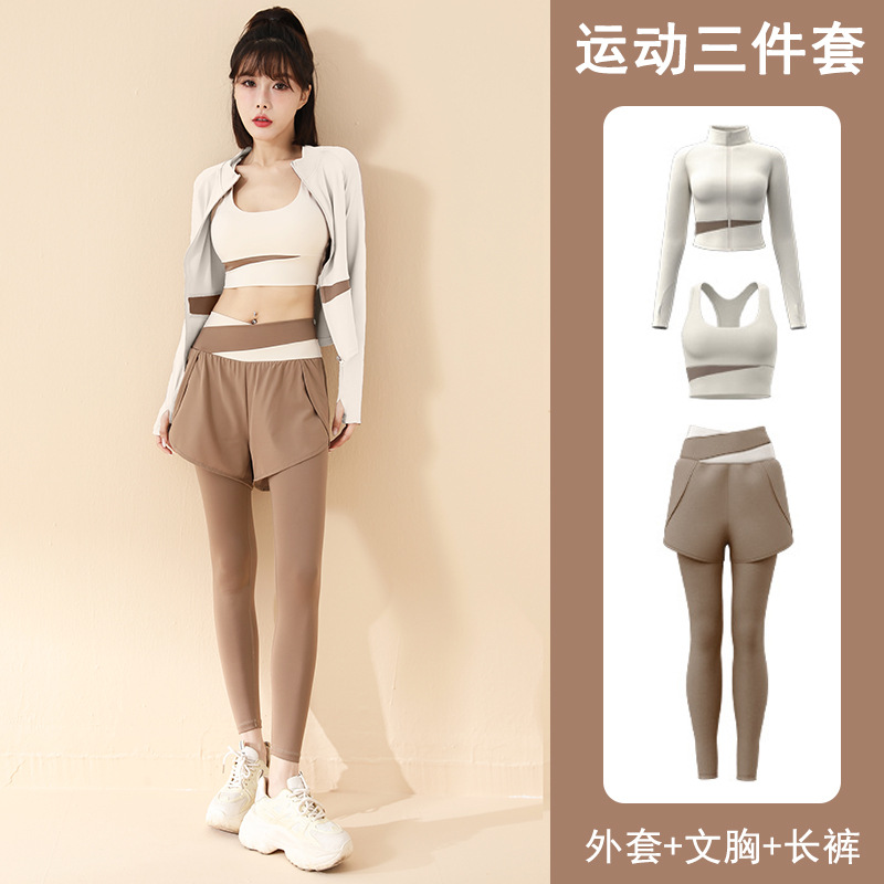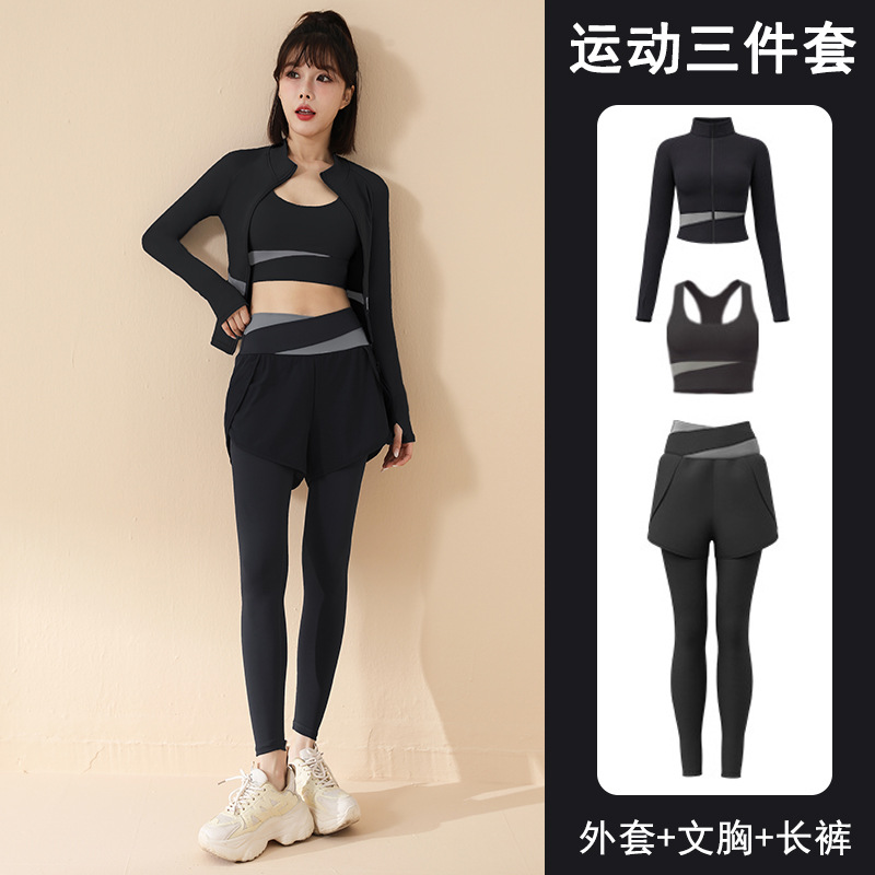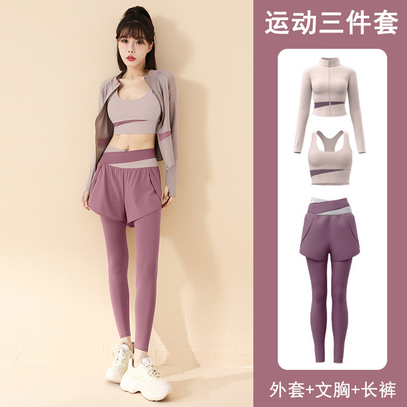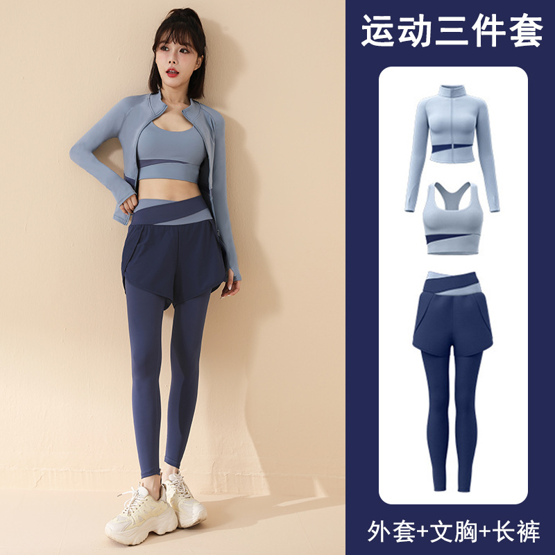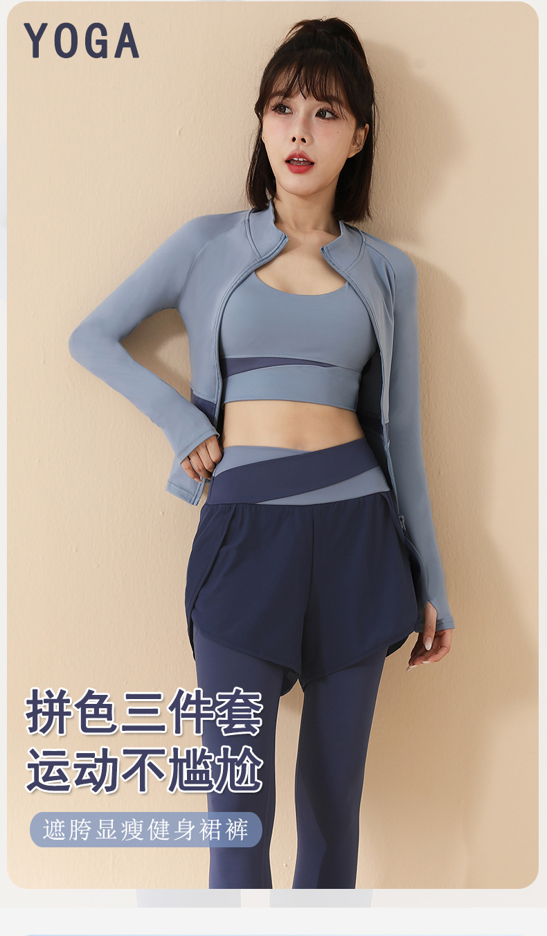 컬러 매칭 요가 3 피스 세트 인터넷 인기 높은 허리 엉덩이 리프팅 달리기 스포츠웨어 통기성 슬림 핏 슬리밍 요가 의류 세트 여성스토어 가기