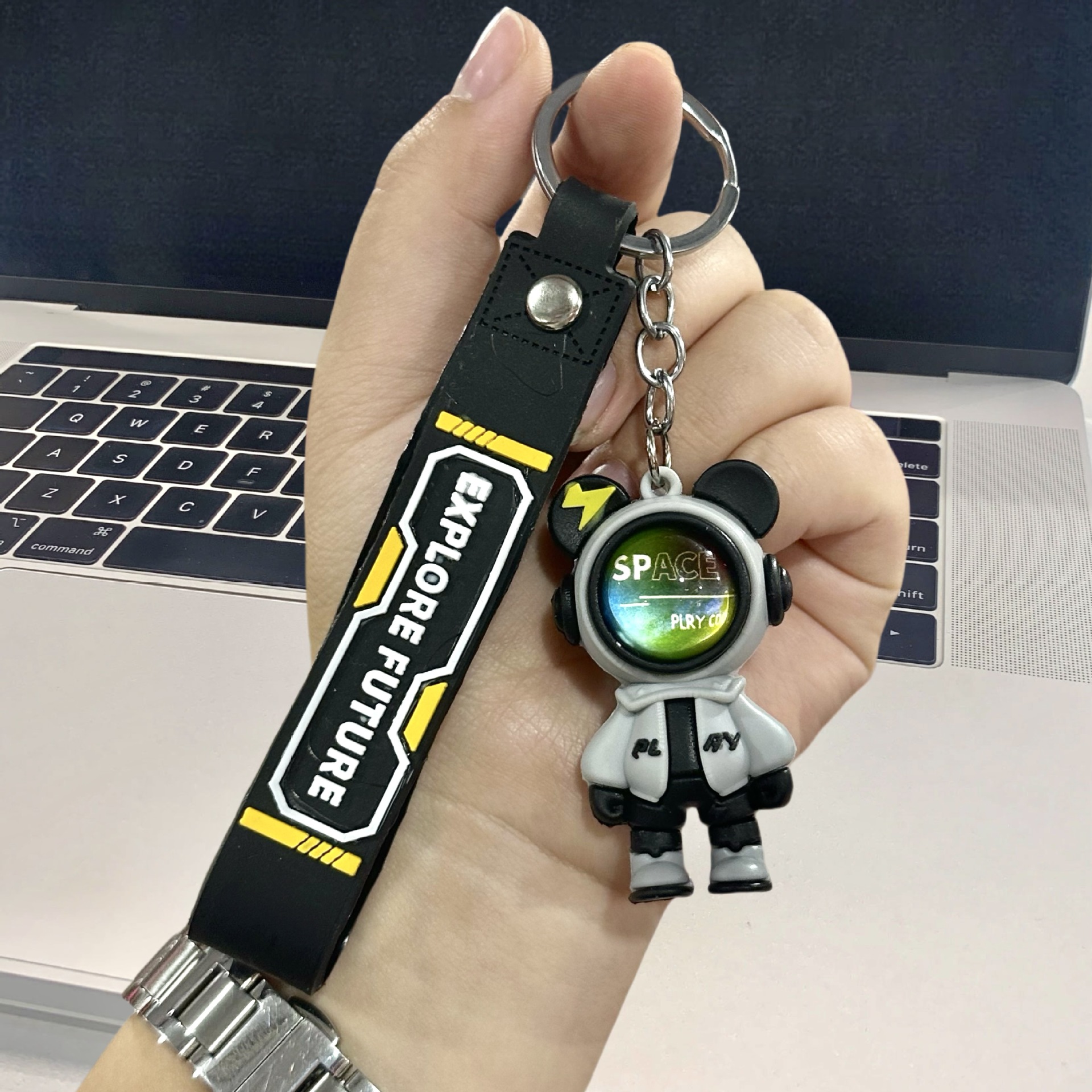 조수 멋진 플래시 전기 곰 키 체인 만화 멋진 인형 자동차 키 체인 학생 학교 가방 펜던트 작은 선물 배치