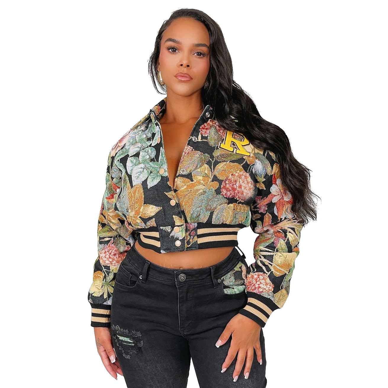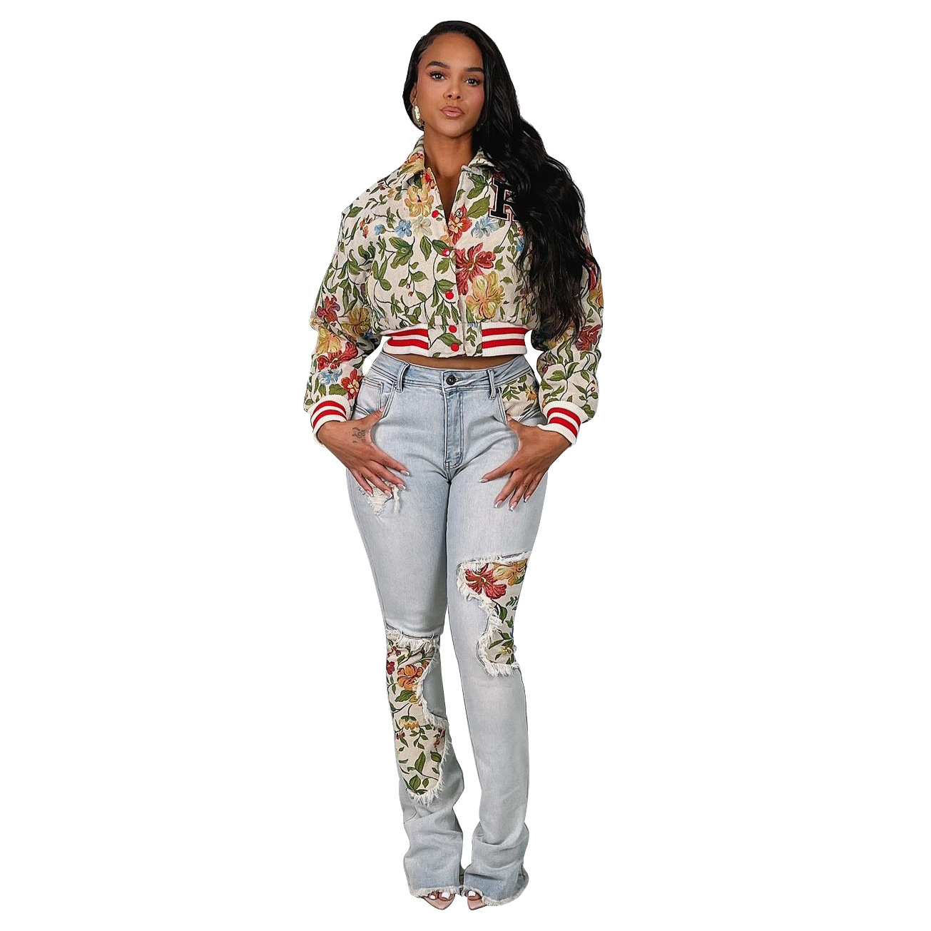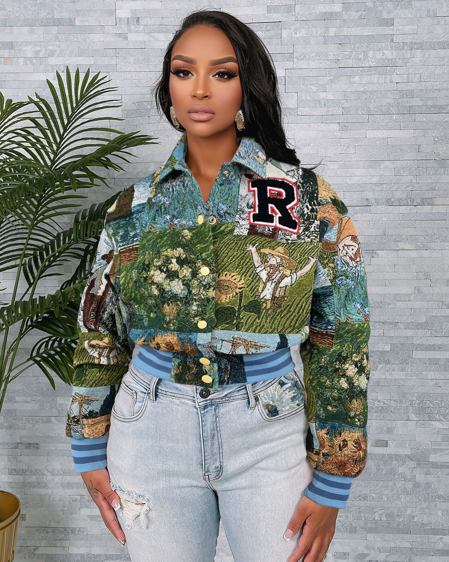 아마존 폭발 2025 봄 새로운 자카드 유럽과 미국 여성의 긴 소매 스퀘어 목 짧은 재킷 코트스토어 가기