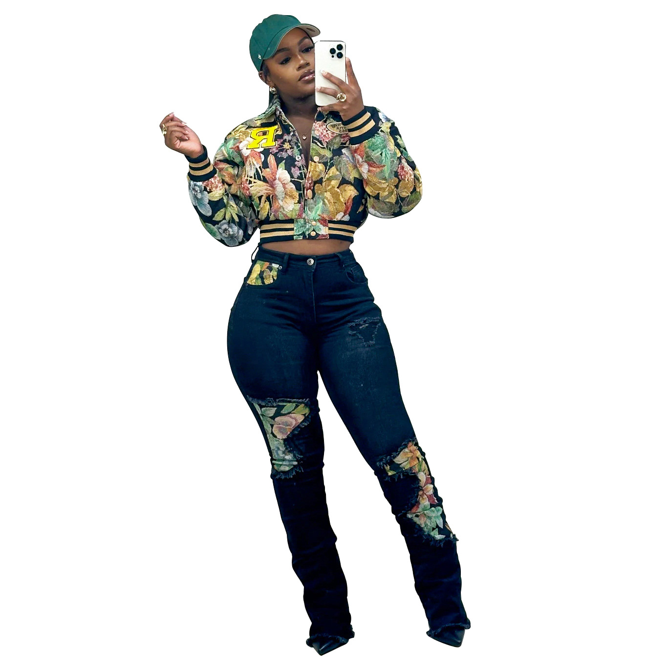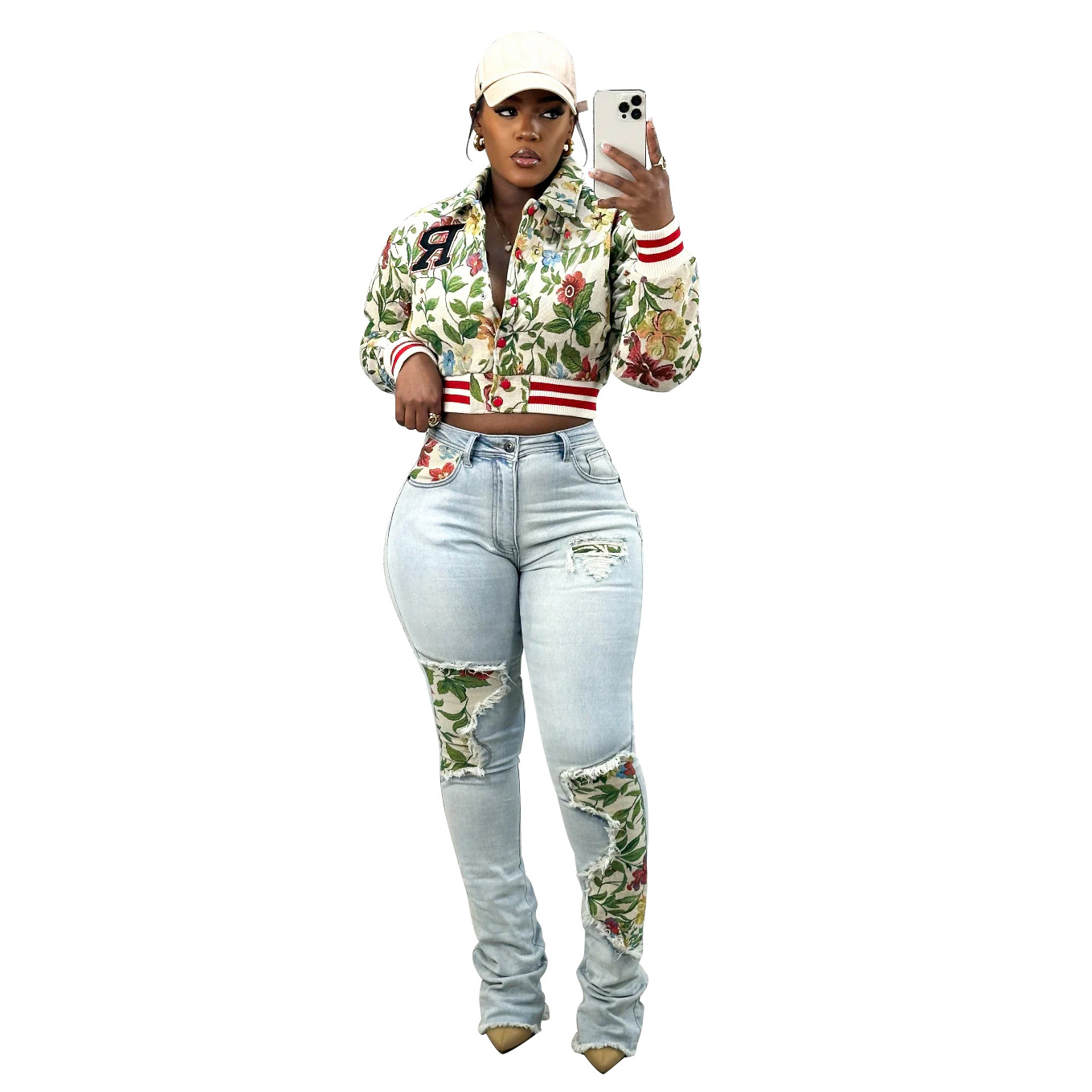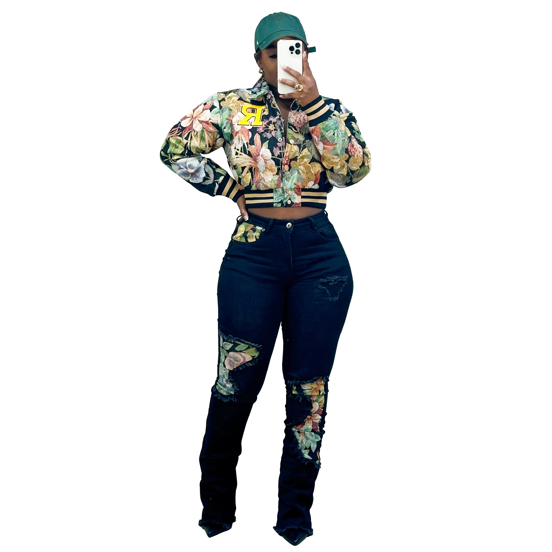 아마존 폭발 2025 봄 새로운 자카드 유럽과 미국 여성의 긴 소매 스퀘어 목 짧은 재킷 코트스토어 가기