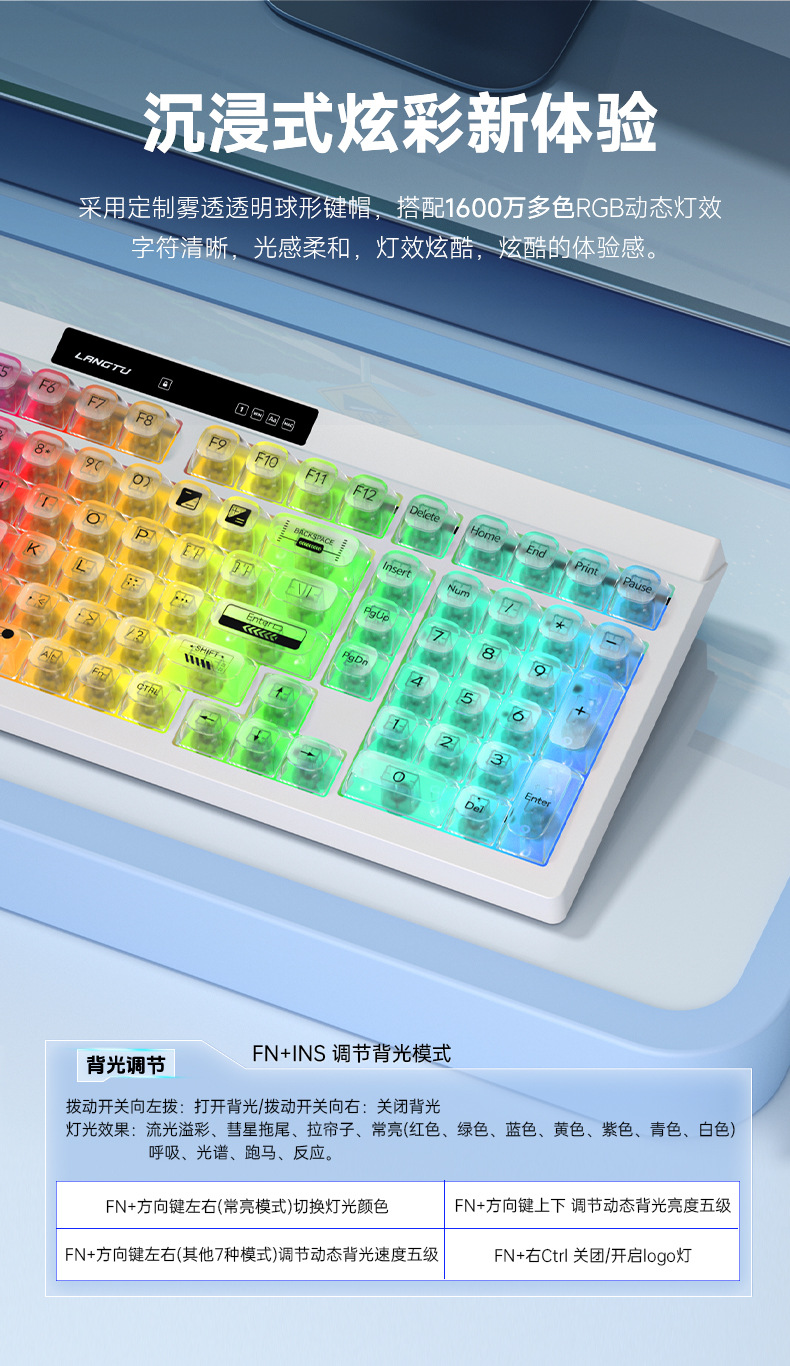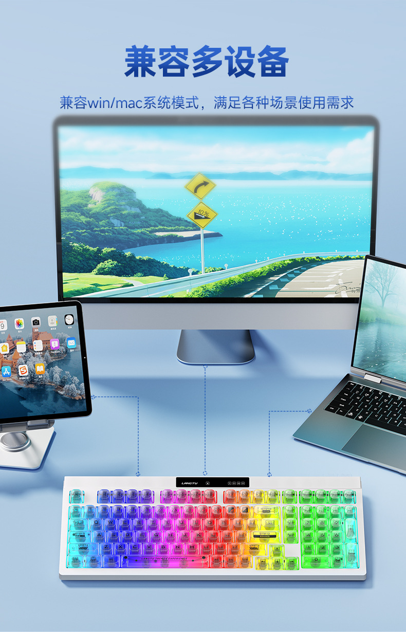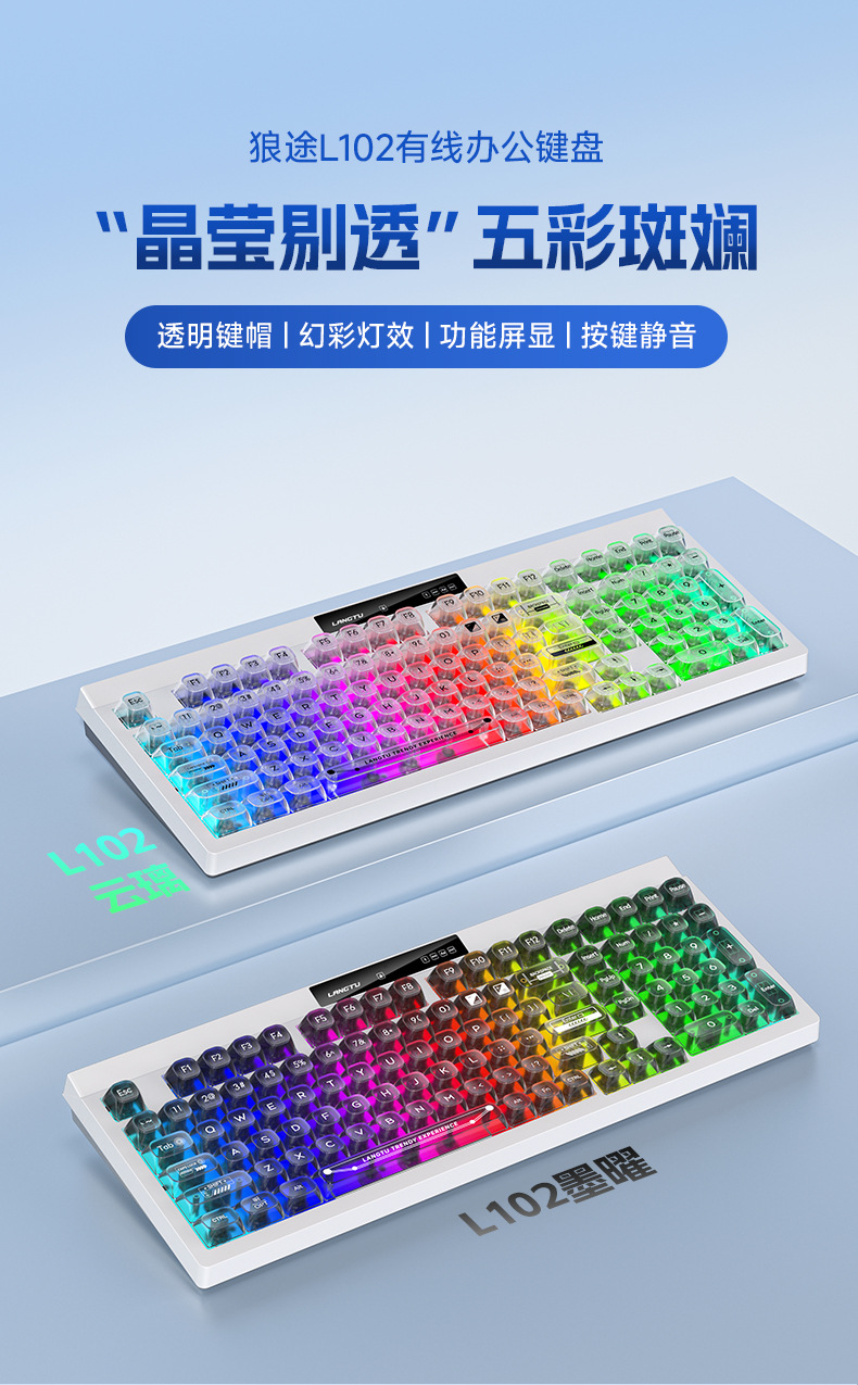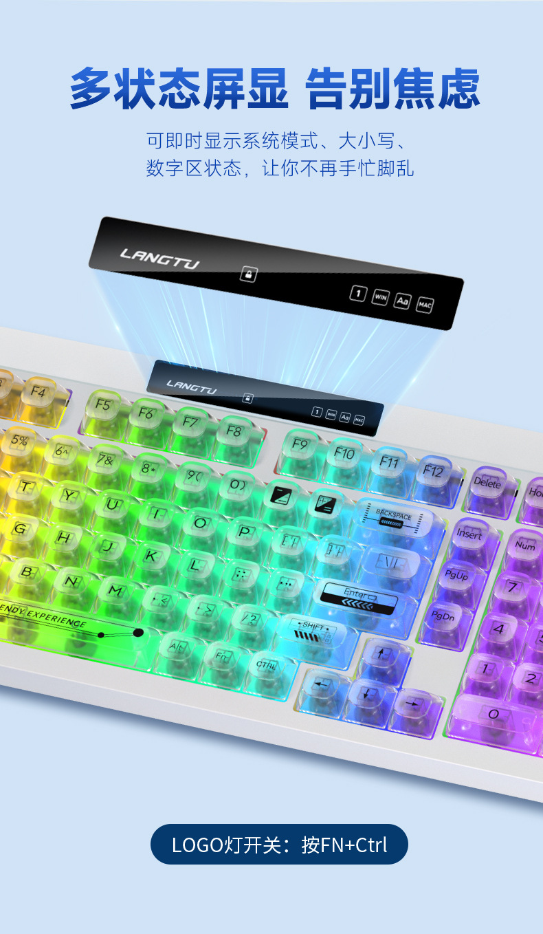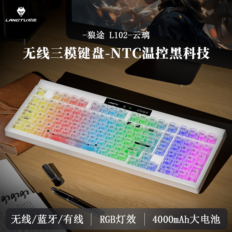 狼途L102高颜值办公静音薄膜键盘无线三模机械手感游戏电竞键盘